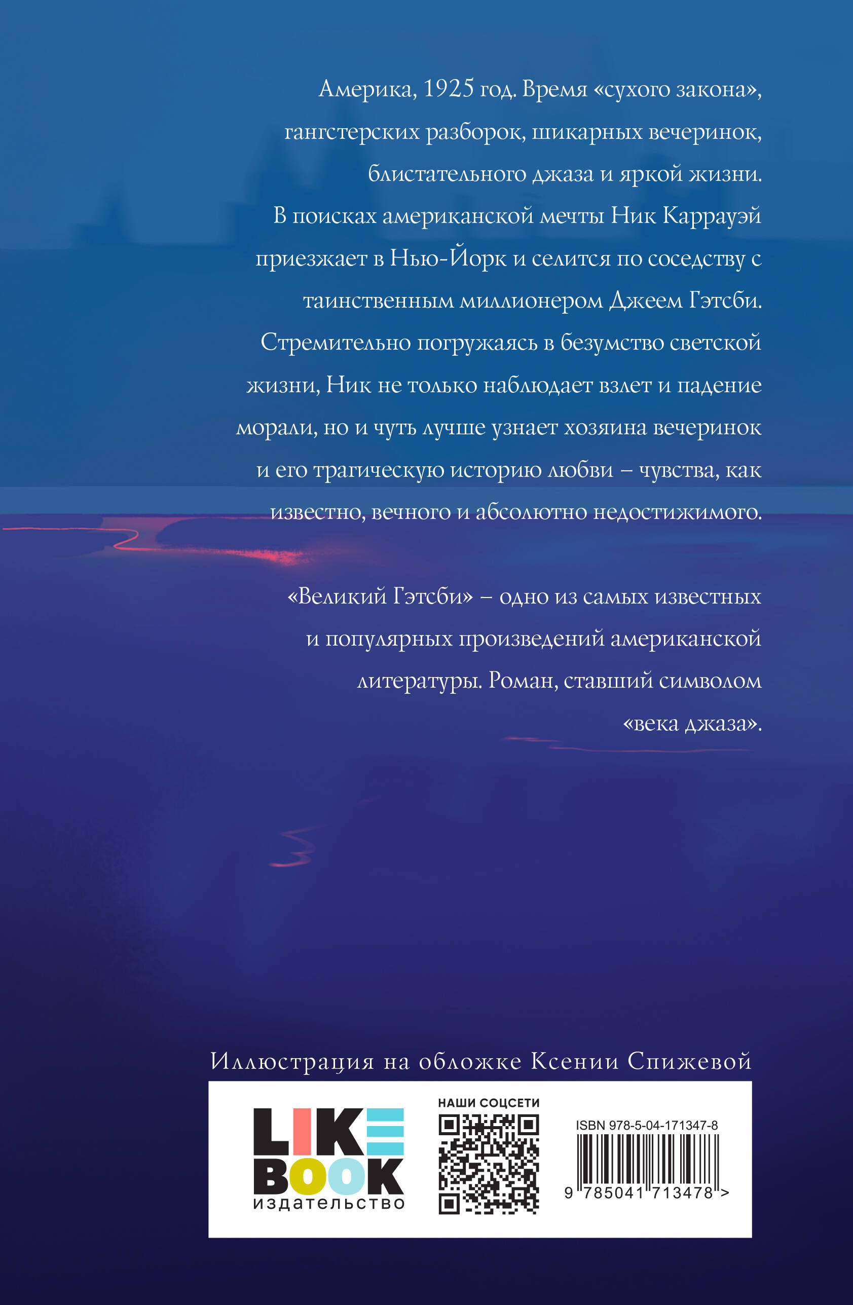 «Великий Гэтсби» - одно из самых известных и популярных произведений американской литературы, которое рассказывает о «веке джаза», блестящей эпохе музыки и развлечений. Роман был переведен на многие языки мира, и с момента публикации в 1925 году был переиздан более 4000 раз. Книга вошла в список «100 лучших англоязычных романов XX века» и была экранизирована несколько раз. Последняя блистательная экранизация вышла в 2013 году, главные роли в которой исполнили Леонардо Ди Каприо, Тоби Магуайр и Кэри Маллиган. Америка, 1925 год. Время «сухого закона», гангстерских разборок, шикарных вечеринок, блистательного джаза и яркой жизни. В поисках американской мечты Ник Каррауэй приезжает в Нью-Йорк и селится по соседству с таинственным миллионером Джеем Гэтсби. Стремительно погружаясь в безумство светской жизни, Ник не только наблюдает взлет и падение морали, но и лучше узнает хозяина вечеринок и его трагическую историю любви - чувства, как известно, вечного и абсолютно недостижимого. «Великий Гэтсби» - одно из самых известных и популярных произведений американской литературы. Роман, ставший символом «века джаза».| Издательство | ООО "Издательство "Эксмо" |