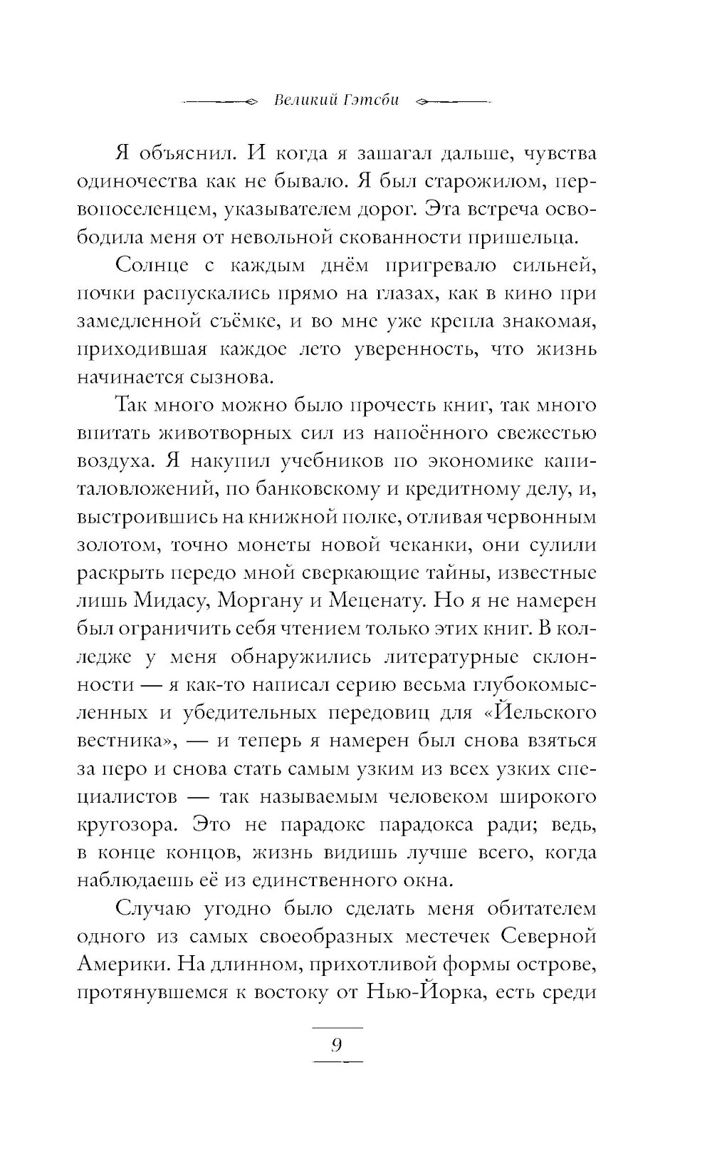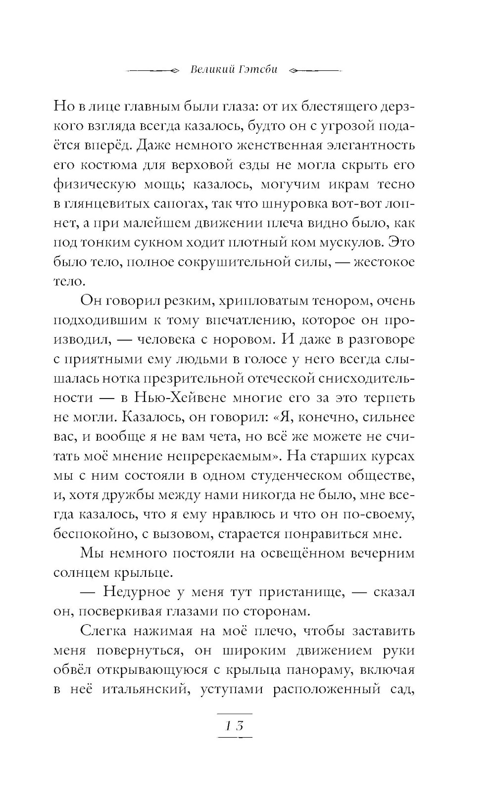 Роман Фрэнсиса С. Фицджеральда «Великий Гэтсби» полон контрастов. Летняя жара, от которой изнемогает всё живое, не мешает бурному развитию событий. Подлинная роскошь особняков уживается с мещанской «красивостью». Главный герой - то ли прекрасный рыцарь, то ли низкий мошенник. Любовь, ревность, злость, обман, гнев, досада, отчаяние стремительно сменяют друг друга, словно мчатся по трассе на предельной скорости. И, наконец - жалобный звон вдребезги разлетевшейся «американской мечты» и тонкая алая струйка в прозрачной воде. Что же это всё-таки было?| Издательство | Эксмо |