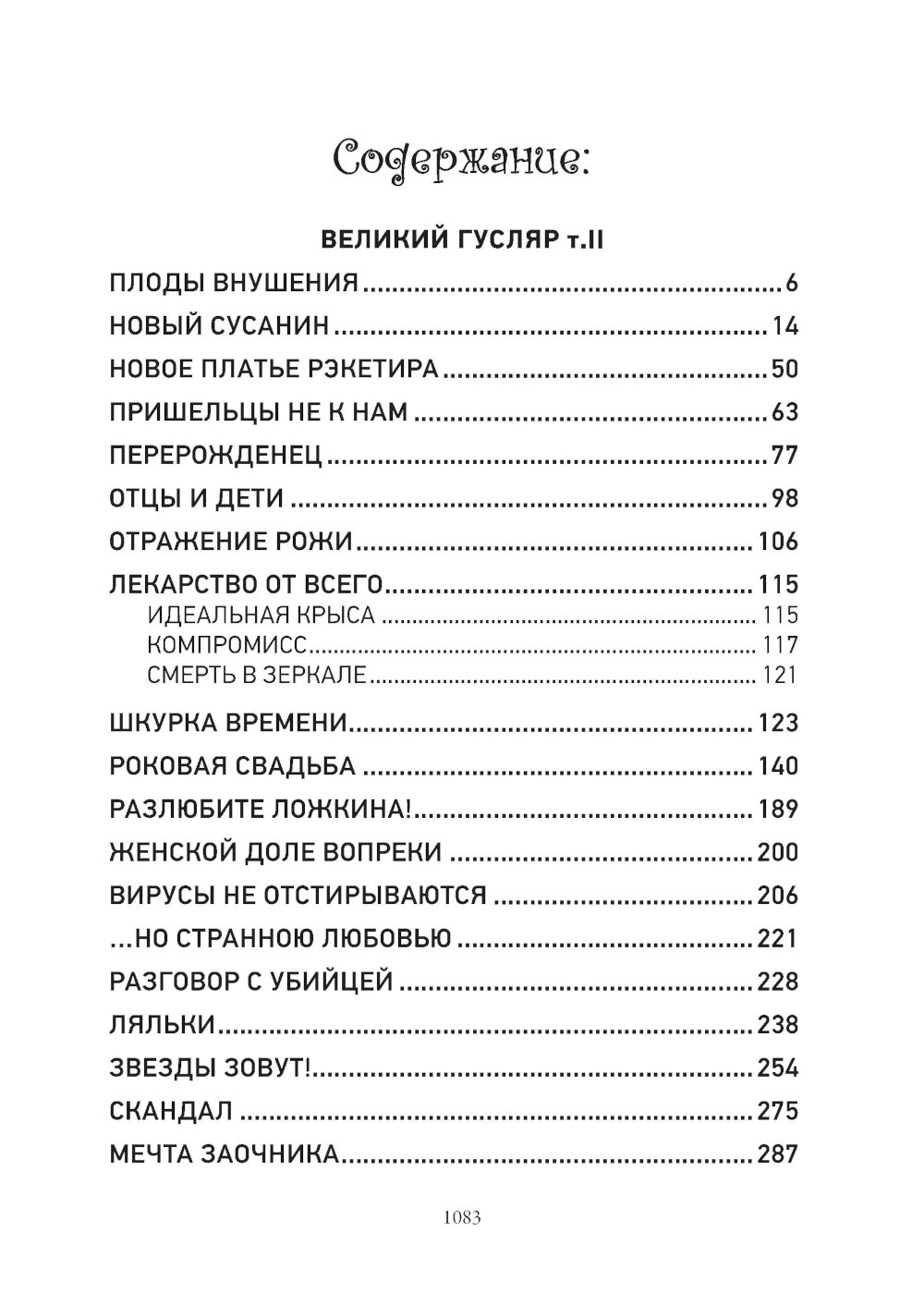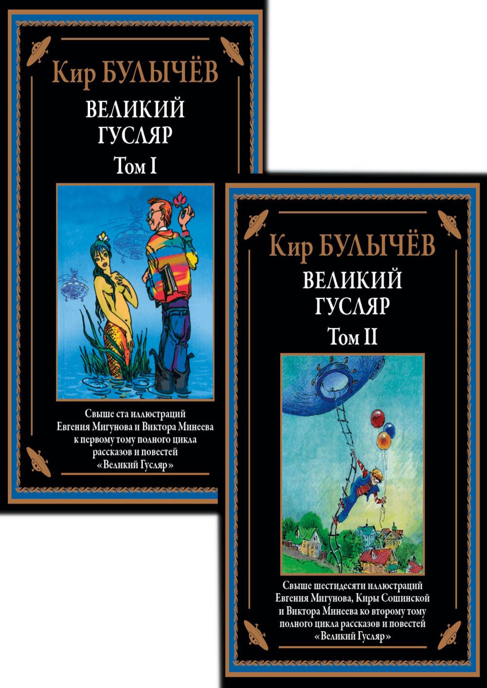 Кир Булычёв (1934-2003) - советский и российский писатель, переводчик, сценарист и востоковед, хорошо известный многим поклонникам фантастики. Свой творческий псевдоним Игорь Всеволодович Можейко составил из имени жены Киры Сошинской и девичьей фамилии своей матери - Марии Булычёвой. Можейко родился в Москве. В детстве мальчик любил читать, особенно он увлекался произведениями таких писателей-фантастов, как Александр Беляев и Иван Ефремов. По окончании школы Можейко поступил в Московский государственный институт иностранных языков, где выучил английский и бирманский. Позднее он окончил аспирантуру Института Востоковедения АН СССР и там же остался работать. Можейко защитил кандидатскую и докторскую диссертации по истории Бирмы, занимался переводами и писал историко-географические очерки для различных журналов. В научных кругах Игорь Всеволодович был известен своими публикациями по истории Юго-Восточной Азии. Фантастические рассказы и повести писатель публиковал исключительно под псевдонимом: в научной среде фантастическая литература считалась литературой несерьёзной, и Можейко мог столкнуться с осуждением коллег. Литературная деятельность Игоря Всеволодовича отличалась многообразием: он издавал научные труды, публицистические статьи и художественные произведения. Особенную слабость Булычёв питал к циклам сочинений, объединённых общими героями, локациями или тематикой. К ним можно отнести серии о докторе Владиславе Павлыше, о находчивой девочке из будущего Алисе и о необыкновенном городе Великий Гусляр, в котором реальность тесно переплетается с фантастикой. Прообразом Великого Гусляра стал Великий Устюг, который Булычёв посетил ещё до того, как начал заниматься художественной литературой. Город так поразил писателя, что несколько лет спустя он запечатлел его облик в первом своём рассказе из гуслярской серии -"Связи личного характера". С тех пор на протяжении длительного периода времени Булычёв продолжал выпускать рассказы и повести о дивном городе и незаурядных людях, его населяющих. О Великом Гусляре Булычёв писал на протяжении нескольких десятилетий. Перемены, произошедшие за это время в жизни как самого автора, так и целой страны, не могли не отразиться на гуслярских рассказах. Изменения претерпела и тематика рассказов Булычёва, и само его понимание фантастики. И всё же в Гусляре читателей по-прежнему ждут знакомые герои, инопланетные формы жизни, игра в домино и многие другие приметы гуслярской фантасмагорической реальности. В первый том собрания сочинений о Великом Гусляре вошло шестьдесят рассказов и три повести Булычёва. Во второй том сочинений о Великом Гусляре вошло сорок два рассказа и четыре повести Булычёва. Тексты сборника проиллюстрированы тремя советскими и российскими художниками. Евгений Тихонович Мигунов (1921-2004) - выдающийся мультипликатор, мастер книжной графики; он часто работал совместно с писателями-фантастами. Булычёвских героев он изображал более сорока лет. Кира Алексеевна Сошинская (1933-2022) - архитектор по образованию, писательница и жена Кира Булычёва. Виктор Михайлович Минеев - талантливый художник, занимавшийся оформлением различных журналов и проиллюстрировавший множество произведений мировой литературы.| Издательство | СЗКЭО |