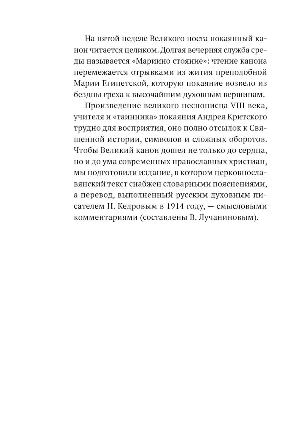 Аннотация: Великий канон святого Андрея Критского с переводом на русский язык и пояснениями к тексту