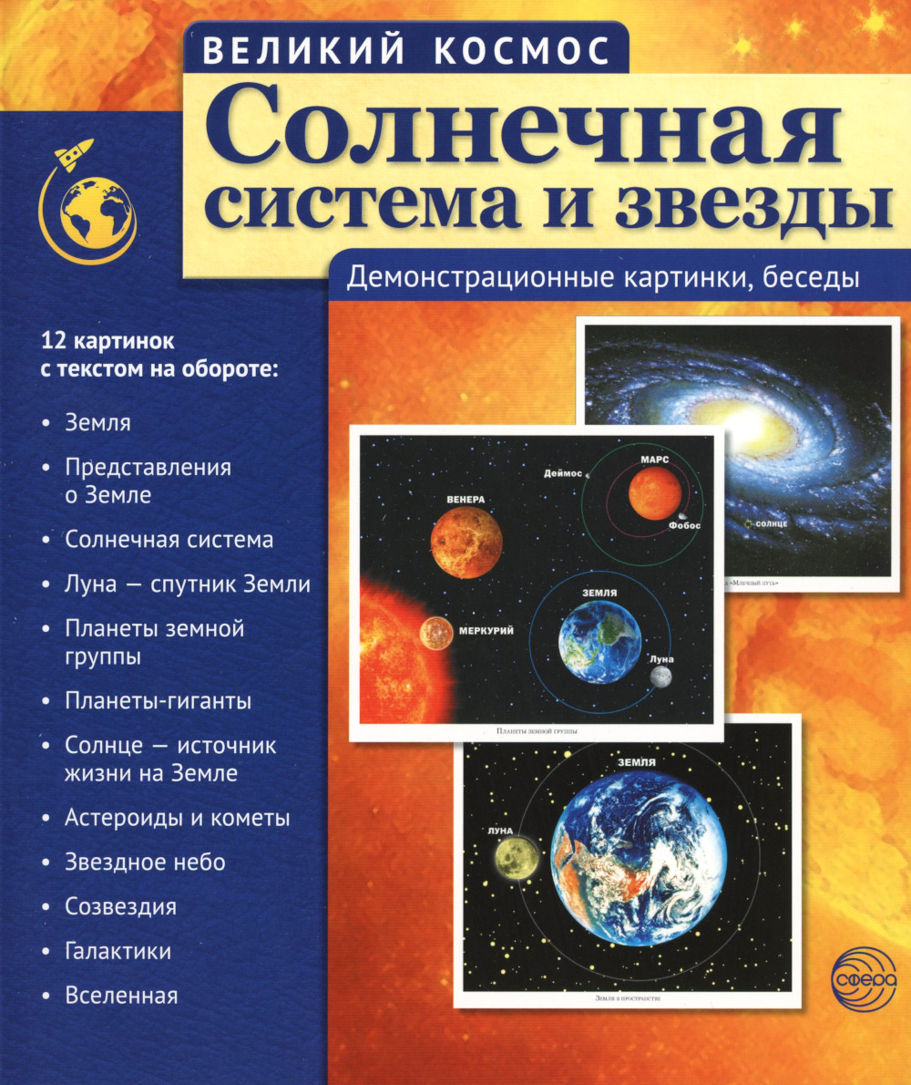 Аннотация: Великий космос: 3 комплекта демонстрационных материалов по 12 картинок (с текстом на обороте)