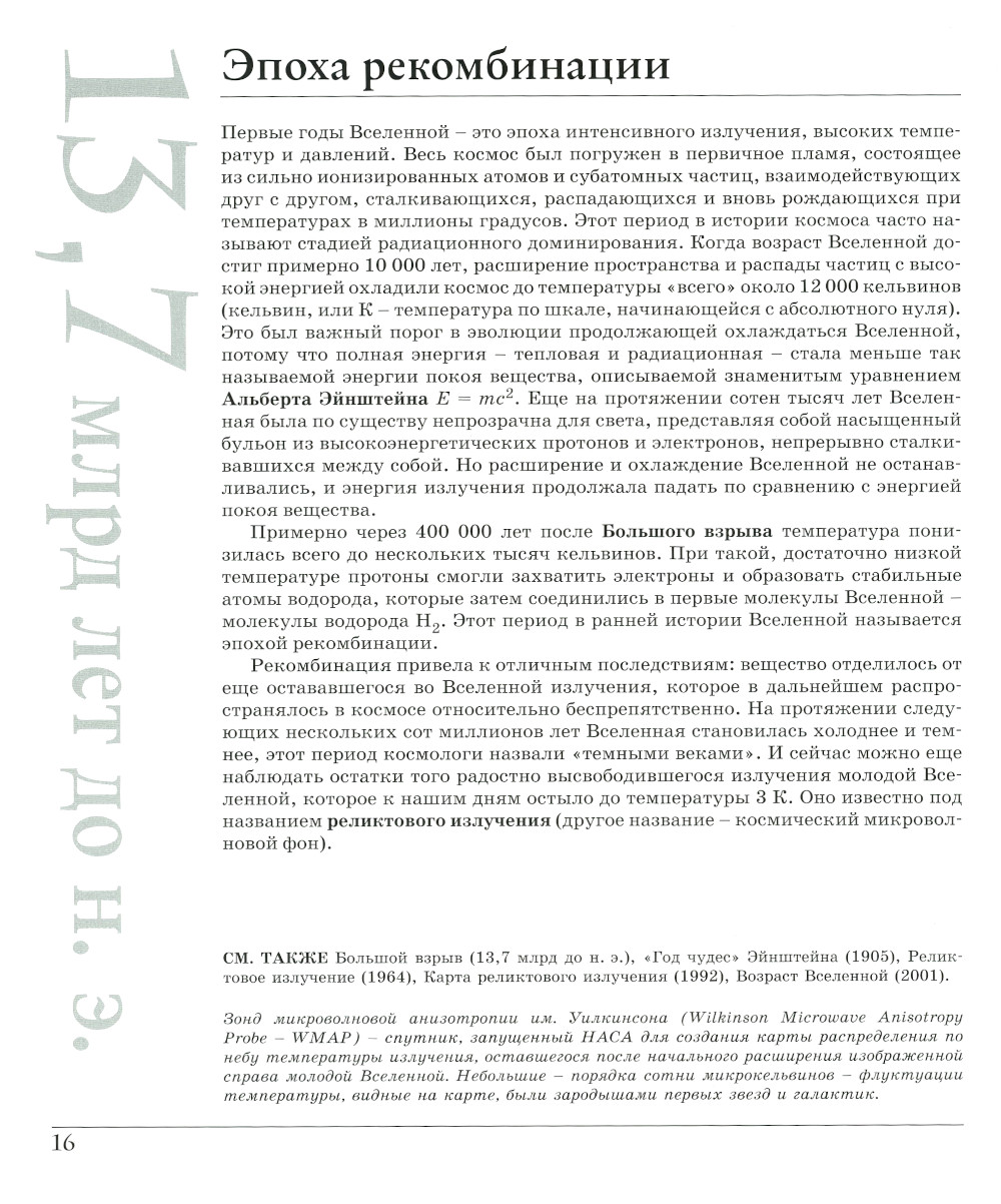 В книге вы найдете ответы на важнейшие вопросы современной науки: как зародилась Вселенная? Как рождаются звезды и галактики? Есть ли планеты, подобные Земле? Одиноки ли мы в этом мире? Автор представляет читателю 250 основных вех в истории астрономии. Все статьи сопровождаются яркими, красочными иллюстрациями. Для всех интересующихся астрономией.| Издательство | Лаборатория знаний |