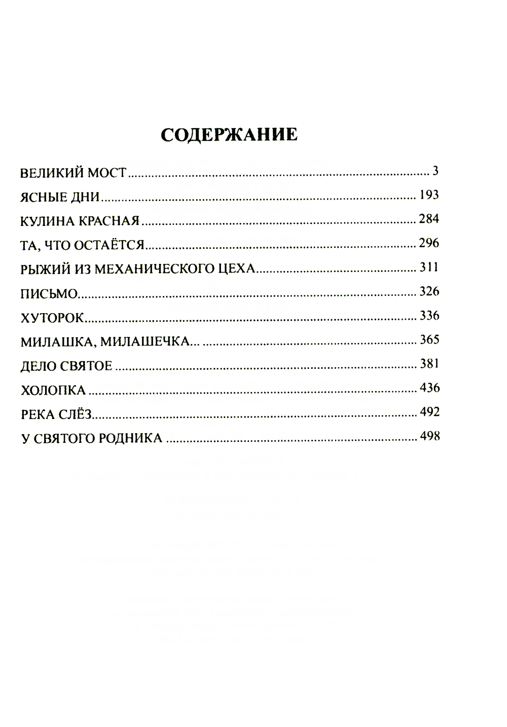 В новый сборник известного русского писателя Юрия Васильевича Красавина (1938-2013) вошли двенадцать произведений, объединенных широкой палитрой отношений между мужчиной и женщиной. Во все времена, что бы ни происходило вокруг, даже в эпоху войн и потрясений, эта тема волновала и главенствовала в мире. Роман «Великий мост», лирические повести и рассказы, написанные в изысканной бунинской традиции, помогут читателю пережить знакомые или незнакомые робость и надежду, ревность и страсть, тревогу и счастье, как пережили их герои этой книги.| Издательство | Вече |