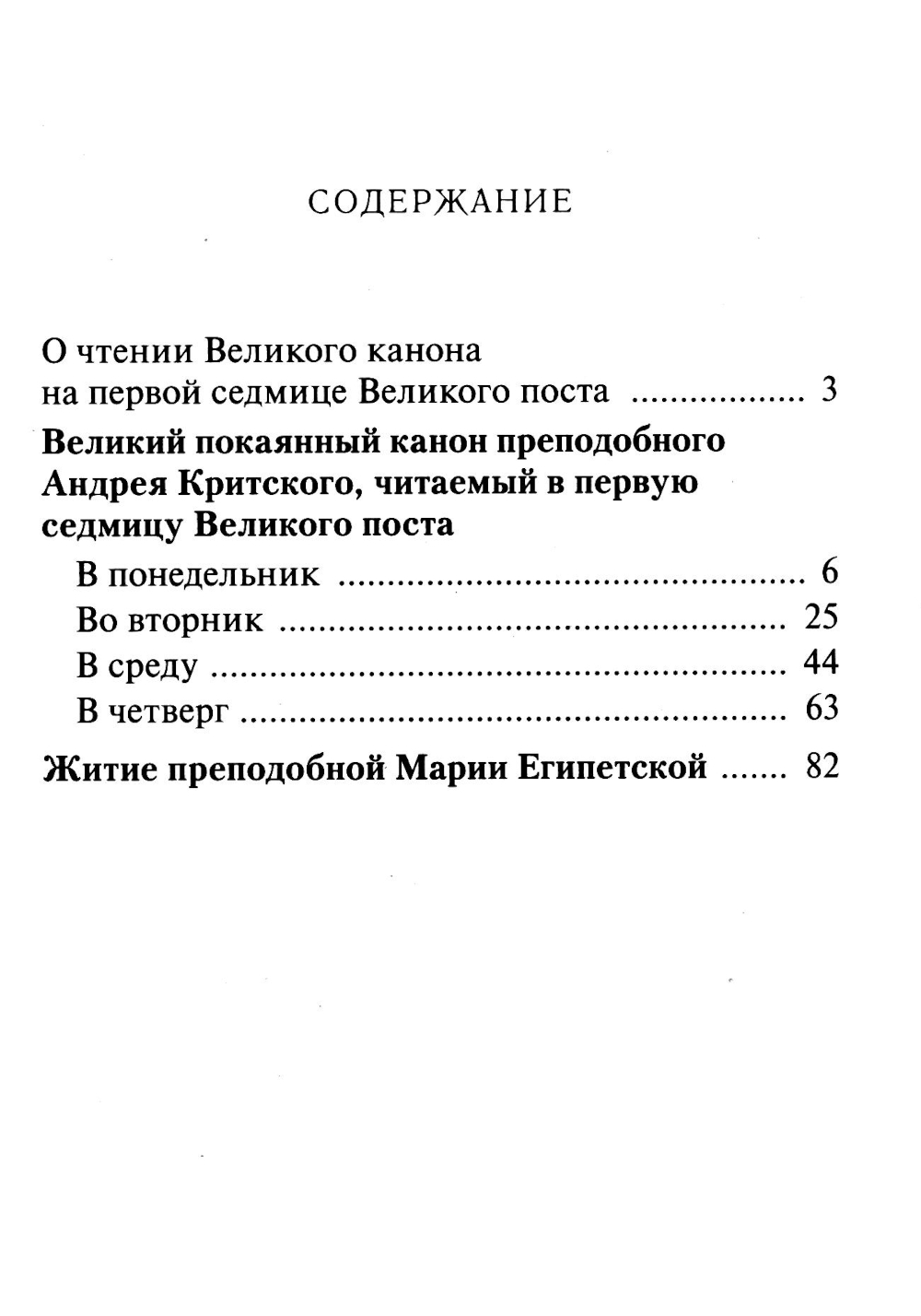 Аннотация: Великий покаянный канон преподобного Андрея Критского, читаемый на первой седмице Великого поста. Житие преподобной Марии Египетской