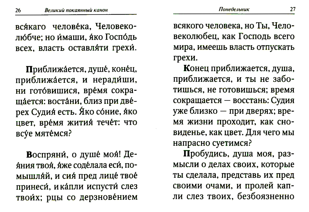 Великий покаянный канон преподобного Андрея Критского с параллельным переводом