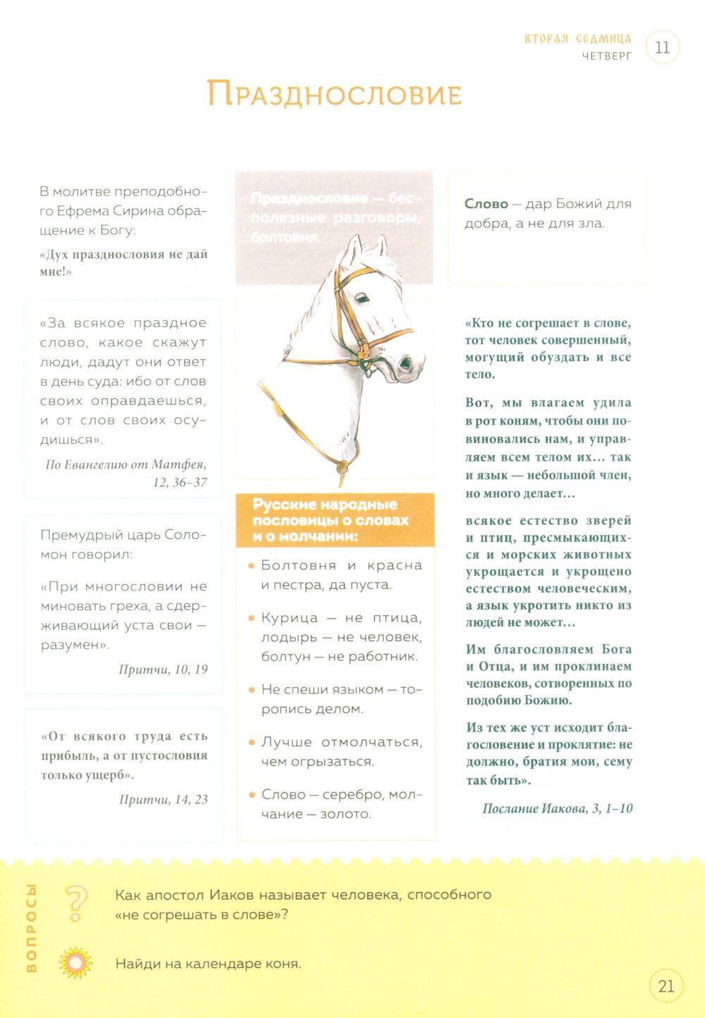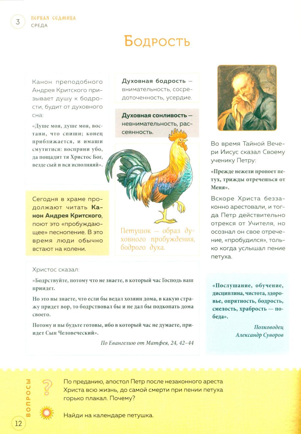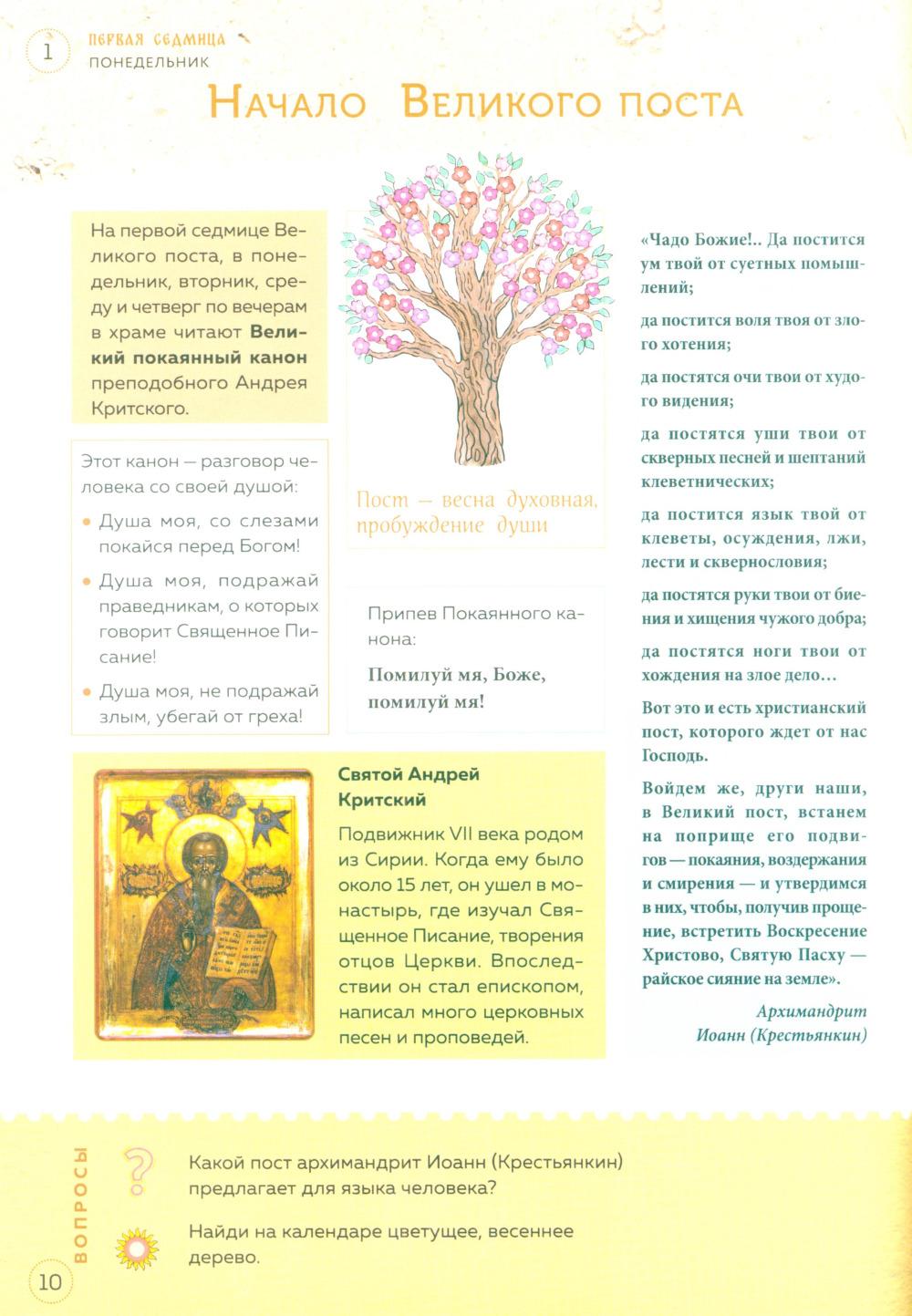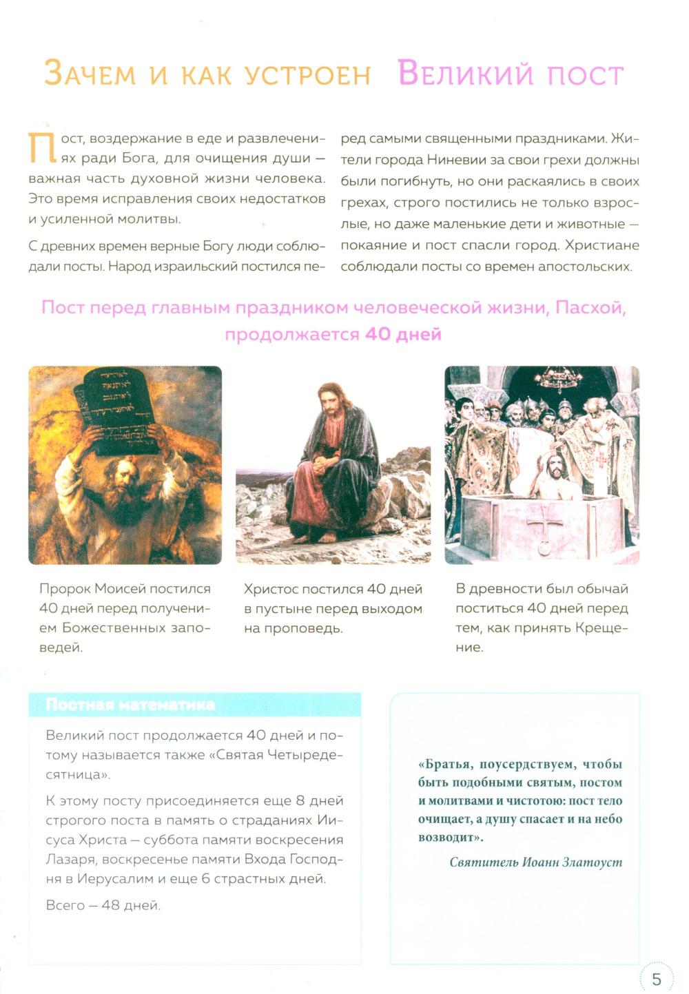 Это издание просто и наглядно покажет, что такое Великий пост, смысл и задачи этого особенного времени; поможет детям и их родителям осмысленно пройти Великий пост и Страстную седмицу, подготовиться ко встрече с Пасхой - день за днём, ступенька за ступенькой. • Для детей с 5 лет, подростков и взрослых (несколько уровней погружения); • для тех, кто постится впервые и для тех, кто не первый год проводит в ритме церковной жизни; • чтения и задания на каждый день поста; • особенности и смысл великопостных богослужений; • как молиться и чем заниматься во время поста; • о христианских добродетелях по учению святых отцов, по образам русской и мировой культуры; • задания для детей на каждый день поста. В наборе: • большая книга с наглядными объяснениями на каждый день Великого поста; • красочный плакат формата А2 - календарь на Великий пост (новый измененный вариант бестселлера «Интерактивный календарь на Великий пост»); • наклейки. И книгу, и плакат-календарь можно использовать на уроках по Закону Божию и основам православной культуры.| Издательство | Вольный Странник |