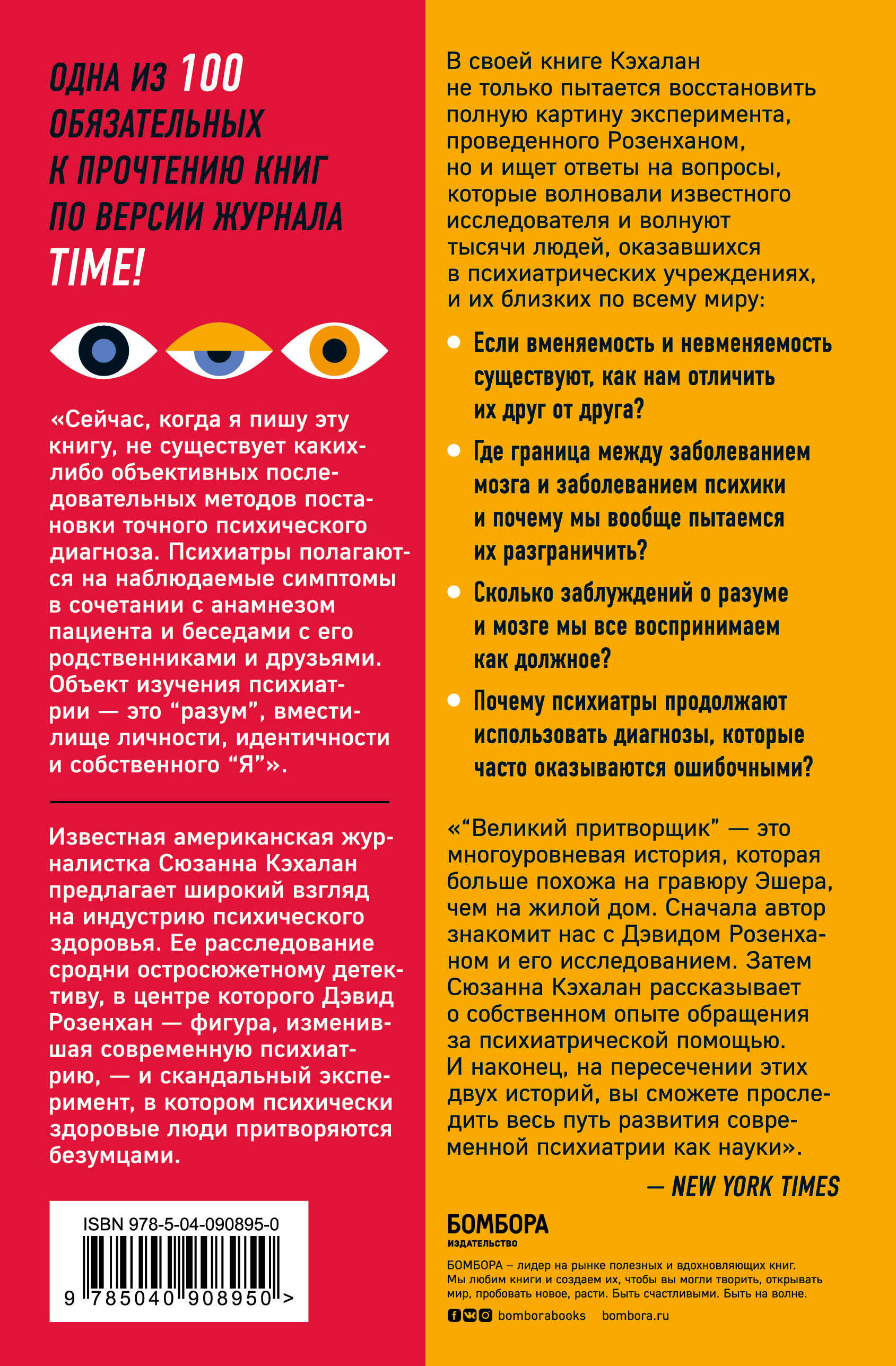 «Сейчас, когда я пишу эту книгу, не существует каких-либо объективных последовательных методов постановки точного психического диагноза: депрессию не диагностируют по анализу крови, а шизофрению - по снимку мозга. Вместо этого психиатры полагаются на наблюдаемые симптомы в сочетании с анамнезом пациента и беседами с его родственниками и друзьями. Объект изучения психиатрии - это "разум", вместилище личности, идентичности и собственного "Я"». Статья Дэвида Розенхана «Психически здоровые на месте сумасшедших», опубликованная в главном научном издании «Science» стала «мечом, пронзившим самое сердце психиатрии»: подорвала ее авторитет, вызвала ожесточенные дискуссии в кругах психиатров и повлияла на формирование новой системы диагностики психических заболеваний. Ее значение трудно переоценить, однако десятилетия спустя, когда почти не осталось живых свидетелей знаменитого эксперимента, за расследование истории Розенхана взялась Сюзанна Кэхалан. Эта книга обязана своим существованием другому великому притворщику - аутоиммунному энцефалиту, болезни, симптомы которой имитировали шизофрению и биполярное расстройство, но были вызваны физическими причинами - очевидными дисфункциями тела. Жертвой этого великого притворщика и стала Сюзанна. Ей удалось спастись, однако многим другим людям с ее диагнозом повезло куда меньше. В своем расследовании она не только пытается восстановить полную картину эксперимента, проведенного Розенханом, но и ищет ответы на вопросы, которые волновали известного исследователя и волнуют тысячи людей, оказавшихся в психиатрических учреждениях, и их близких по всему миру: • Если вменяемость и невменяемость существуют, как нам отличить их друг от друга? • Где граница между заболеванием мозга и заболеванием психики и почему мы вообще пытаемся их разграничить? • Сколько заблуждений о разуме и мозге мы все воспринимаем как должное? • Почему психиатры продолжают использовать диагнозы, которые часто оказываются ошибочными?| Издательство | Эксмо |