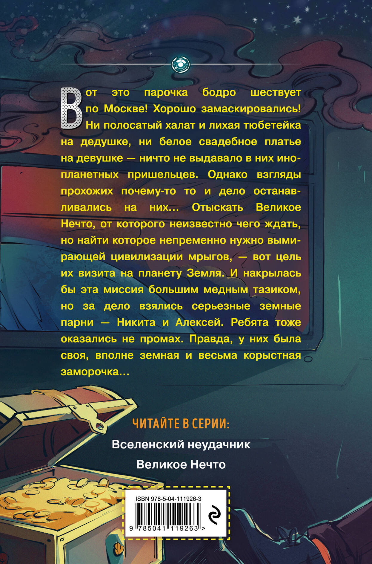 1. Дмитрий Емец - очень популярный детский писатель, его произведениями зачитываются дети самого разного возраста. На его книгах выросло целое поколение читателей, которые рекомендуют любимые произведения уже своим детям. Суммарный тираж его книг превысил 5 000 000 экземпляров. 2. «Вселенский неудачник» и «Великое Нечто» - невероятные фантастические истории, над которыми можно от души похохотать и поднять себе настроение. 3. Фирменный юмор и космические приключения не дадут вам заскучать. 4. Если вы уже закончили читать «Таню Гроттер» и «Мефодия Буслаева» и хочется новых историй в фирменном и любимом стиле, эта серия - хороший выбор. 5. Очень интересное, необычное и стильное оформление в стиле комиксов.