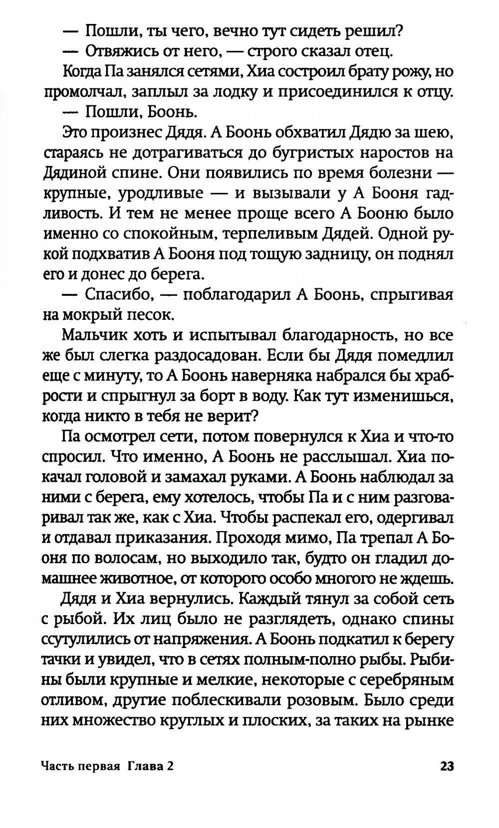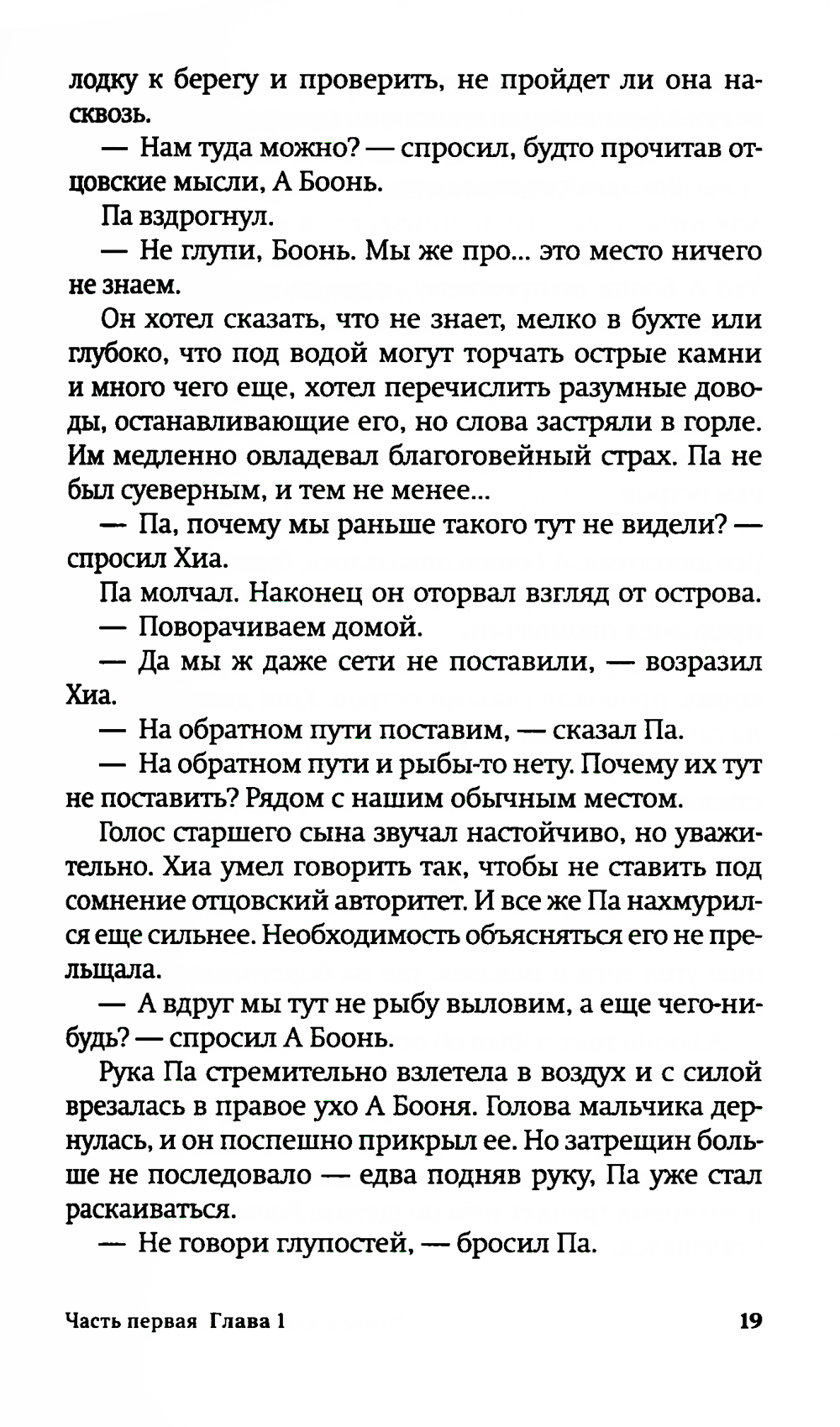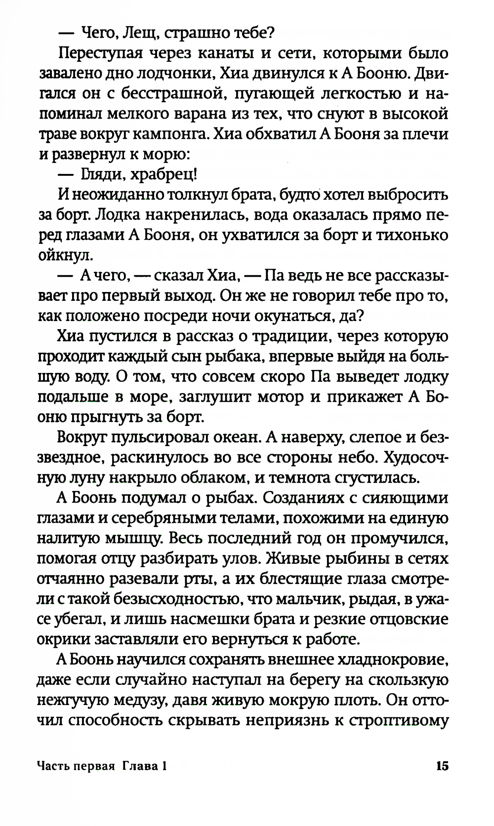 Масштабный роман, который разворачивается на фоне меняющегося Сингапура. История мальчика с уникальными способностями и его детской любви, вплетенная в историю страны. А Боонь родился в рыбацкой деревушке на прекрасном сингапурском берегу, на исходе британского колониального правления. Он с детства отличался от других мальчишек, не интересовался рыбалкой, предпочитал проводить дни, играя с соседской девочкой Сыок Мэй. Однажды он обнаруживает, что обладает странной способностью находить двигающиеся острова, которые никто другой не видит. А Боонь растет и все яснее понимает, что мир маленькой рыбацкой деревушки ему тесен, он мечтает вырваться в большую жизнь. Но когда А Боонь и Сыок Мэй вырастают, Сингапур оказывается в вихре исторических перемен. Будущее рыбацких деревень оказывается под угрозой. История любви, история взросления и история возникновения страны, которая через несколько лет начнет удивительный взлет.| Издательство | Фантом Пресс |