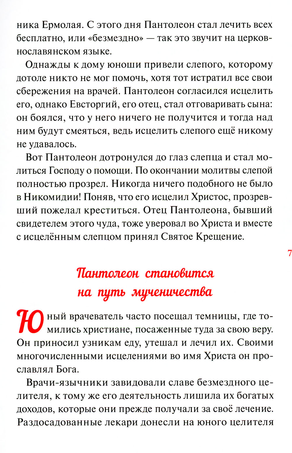 Святого великомученика и целителя Пантелеимона, пострадавшего за веру во Христа в 305 году, почитают во всех православных странах. Из этой книжечки, написанной легко и понятно, дети, да и взрослые, смогут узнать, как жил святой и как прославил Бога своей жизнью и мученической кончиной, как его почитают на Афоне, как он продолжает и сейчас помогать людям данным ему от Бога чудесным даром.| Издательство | Духовное преображение |