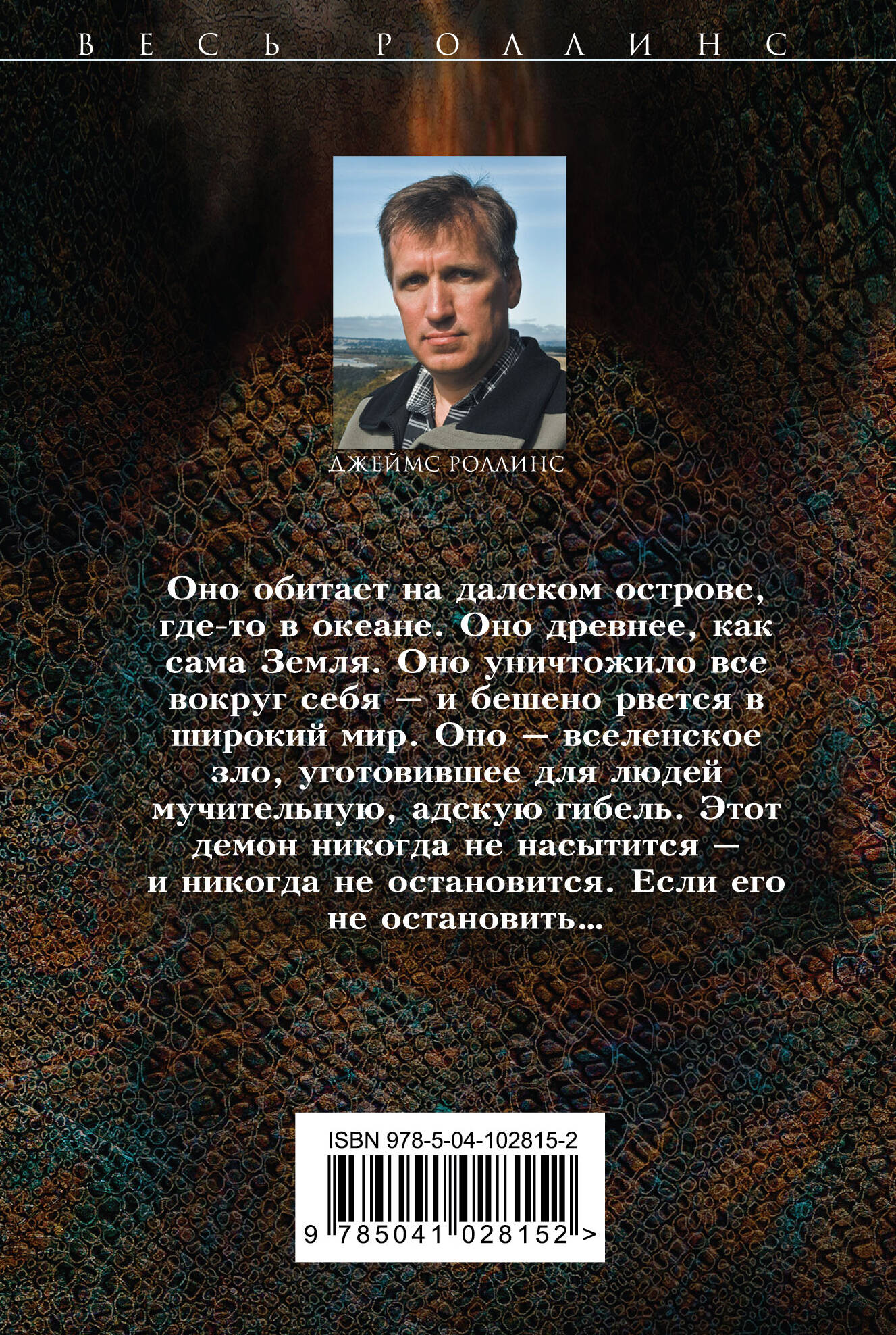Оно обитает на далеком острове, где-то в океане. Оно древнее, как сама Земля. Оно уничтожило все вокруг себя - и бешено рвется в широкий мир. Оно - вселенское зло, уготовившее для людей мучительную, адскую гибель. Этот демон никогда не насытится - и никогда не остановится. Если его не остановить… Об авторе Джеймс Роллинс - не просто писатель, завоевавший поистине мировую славу. И не просто один из 5 самых популярных авторов в жанре приключенческого триллера. Джеймс Роллинс - это настоящая живая легенда. На его счету более 30 романов, каждый из которых становился бестселлером по версии "Нью-Йорк таймс". Его произведения переведены более чем на 40 языков. Его роман об Индиане Джонсе экранизировал Стивен Спилберг. Миллионы людей в мире зачитываются его книгами.