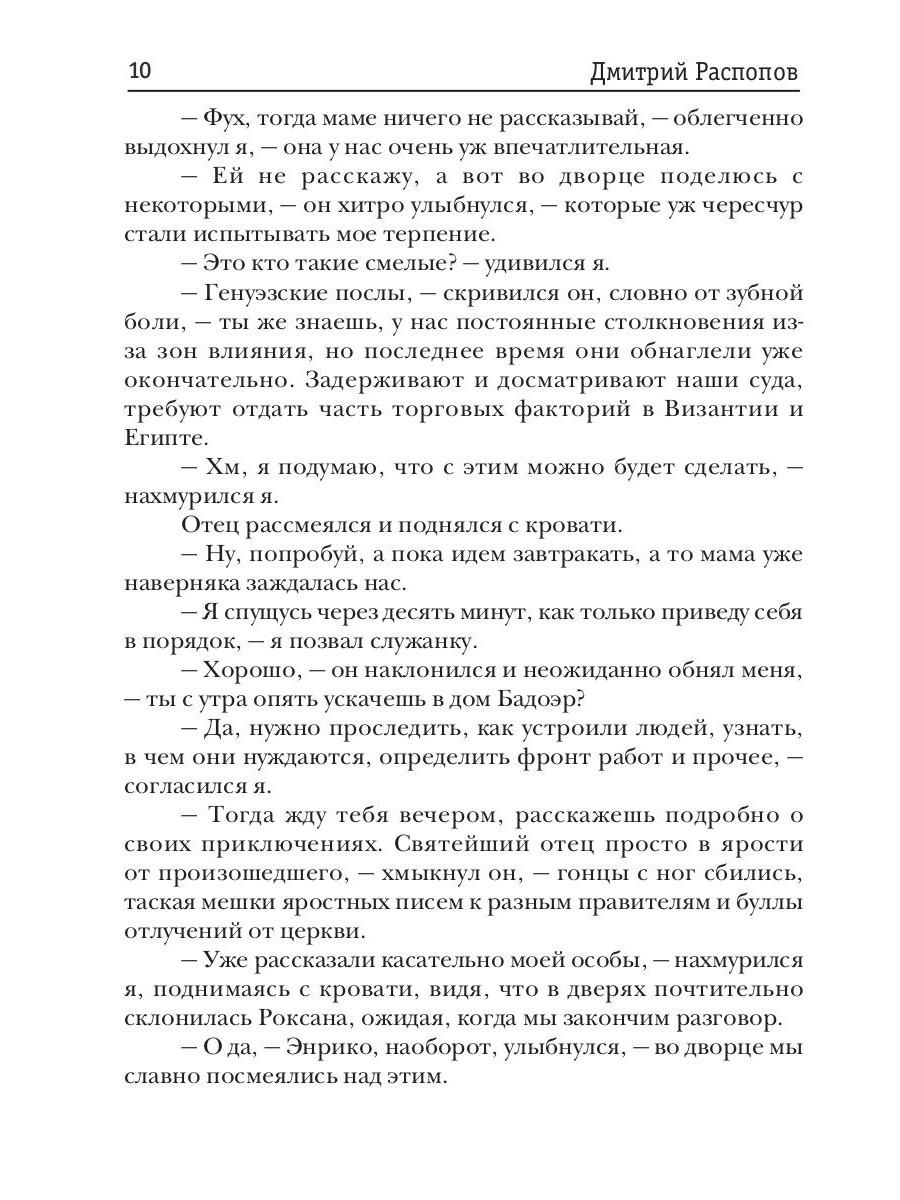 Оперативного сотрудника Хронопатруля Виктора Нечаева ошибочно приговорили к смертной казни. Если бы не напарница Наташа Ростова, его жизнь так бы и закончилась, но… Теперь он в теле годовалого малыша в знатной венецианской семье двенадцатого века, и сама судьба предлагает ему выбор: либо начать жизнь с нуля, забыв о прошлом, либо восстановить справедливость в своём настоящем времени.| Издательство | Т8 RUGRAM |