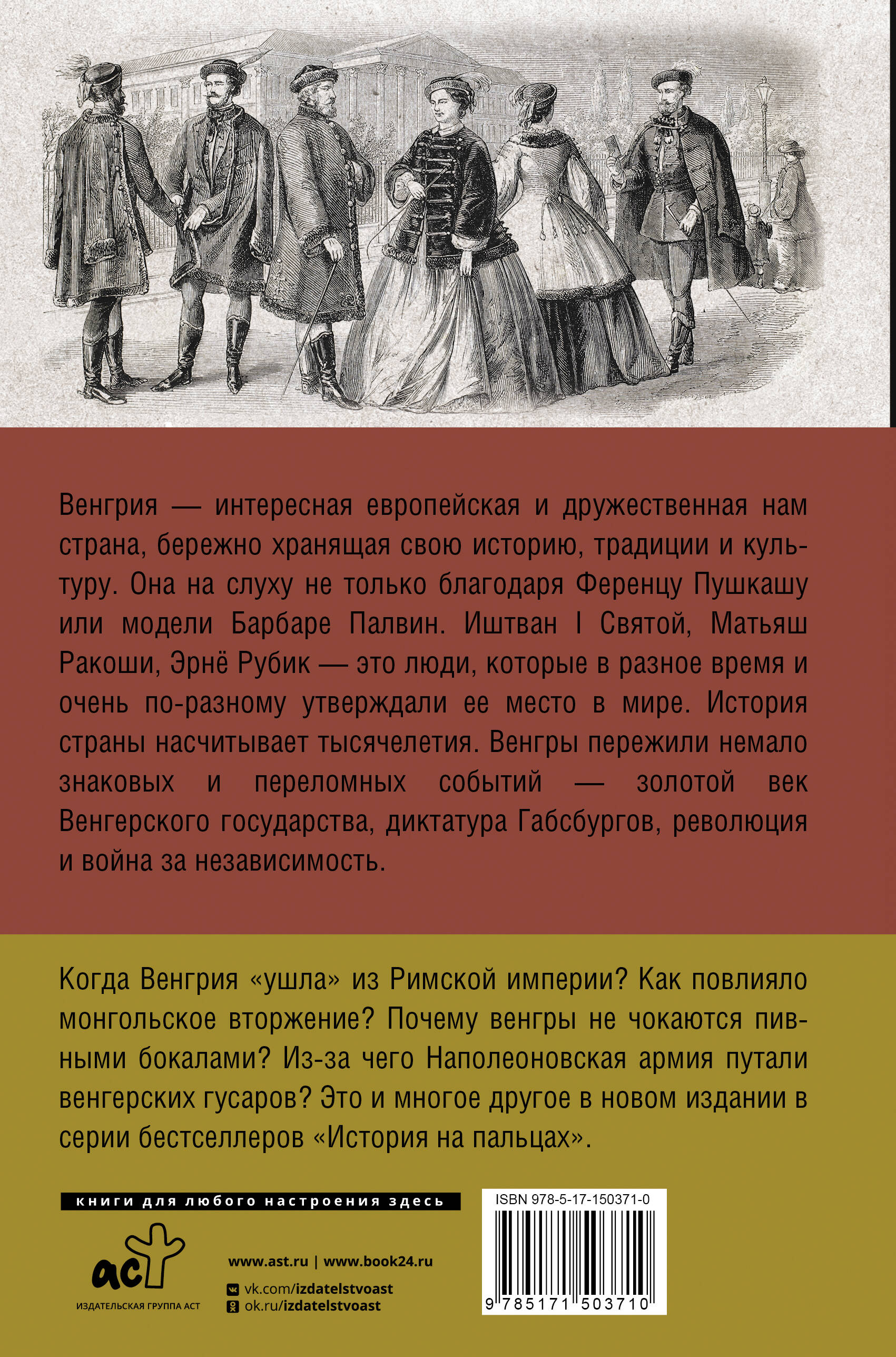 Полная история Венгрии под одной обложкой! Продолжение серии «История на пальцах». Издание оформлено по образцу классического учебника истории, который доступно и последовательно знакомит читателя с историей Венгрии: с древнейших времен и до сегодняшних дней. Книга удобно разделена на познавательные блоки, включает таблицы с хронологией дат и событий, написана простым языком и станет отличным подарком для тех, кто интересуется мировой историей.| Издательство | АСТ |