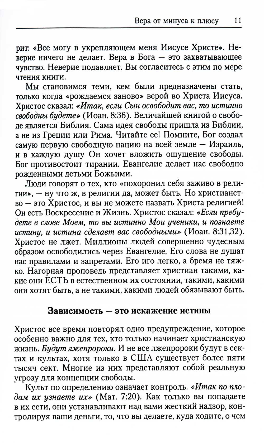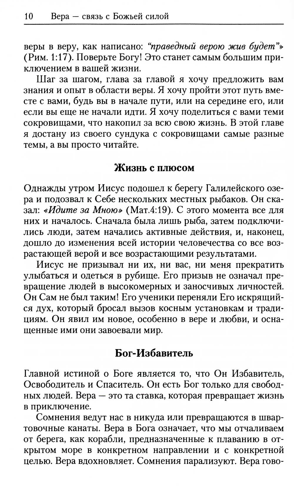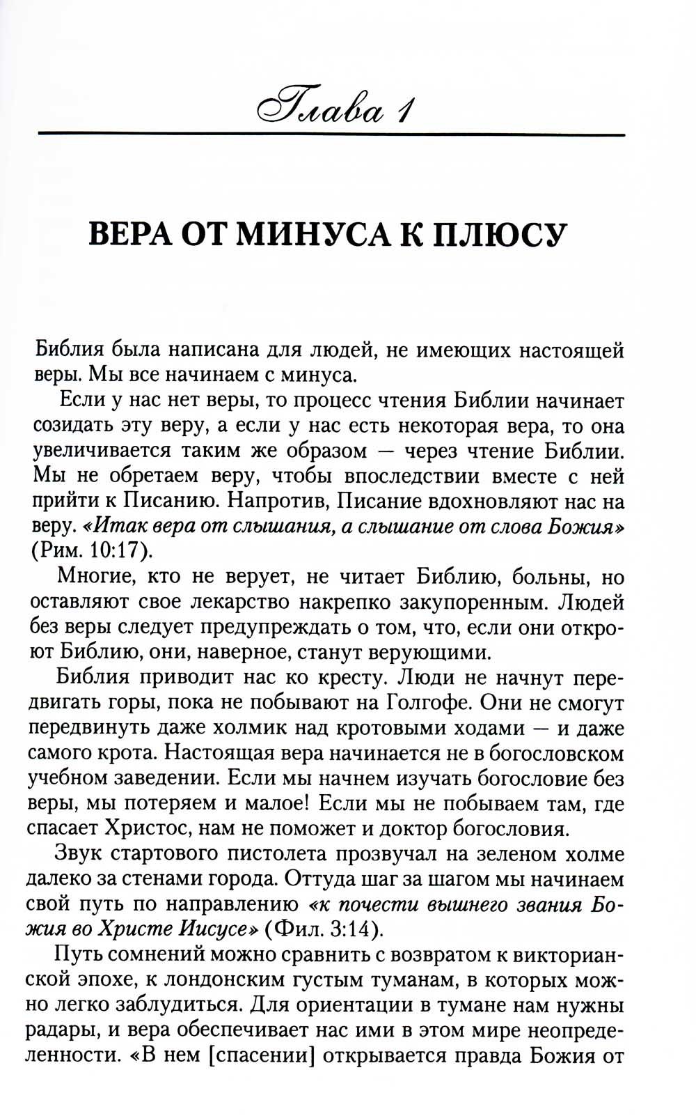 В данной книге тема веры рассматривается с новых позиций. Она предлагает глубокое освещение присущих ей испытаний и побед и более ярко высвечивает характер Бога и Его Слова. Вот лишь один краткий пример того, как Писание иллюстрирует взаимосвязь между верой и чувствами. Когда опасность кажется серьезной, страх неизбежен. Когда химия нашего тела посылает сигналы о надвигающейся катастрофе, когда мы испытываем боль, а болезнь поселяется рядом с нами, нашей естественной реакцией становятся страх и тревога. Но что в таком случае делает вера? Она снимает с наших ног сковывающие нас путы, и тогда мы бросаем вызов парализующему ужасу и так или иначе двигаемся вперед. С Богом страх не может остановить нас - мы преодолеваем его. «Что унываешь ты, душа моя, и что смущаешься? Уповай на Бога; ибо я буду еще славить Его, Спасителя моего и Бога моего» (Пс. 41:6). С каждой главой все больше раскрывается тема благословений, но главное внимание сосредоточено на Иисусе Христе, «начальнике и совершителе веры» (Евр. 12:2). При помощи этой книги я стремился познакомить вас с никогда не меняющимися принципами веры, открытыми в Божьем Слове. Эти принципы доказали свою состоятельность в течение всех пятидесяти лет моего хождения с Богом и десятков лет евангелизационного служения на передней линии фронта. Те же принципы были испытаны и подтверждены в служении моего коллеги, почтенного Джорджа Кенти из Великобритании. Выражаю этому ученому свою глубокую признательность за сотрудничество в подготовке данной рукописи.| Издательство | МРО ХВЕП Христианская Миссия |