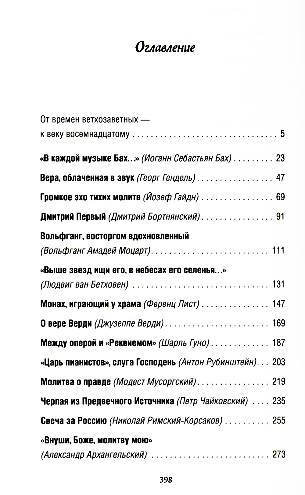 В контексте взаимосвязи христианства и творчества в данной книге рассмотрена история жизни 19 выдающихся зарубежных и отечественных композиторов, живших на протяжении трех веков. Издание рассчитано на широкий круг читателей, интересующихся вопросами культуры, истории, духовной жизни.