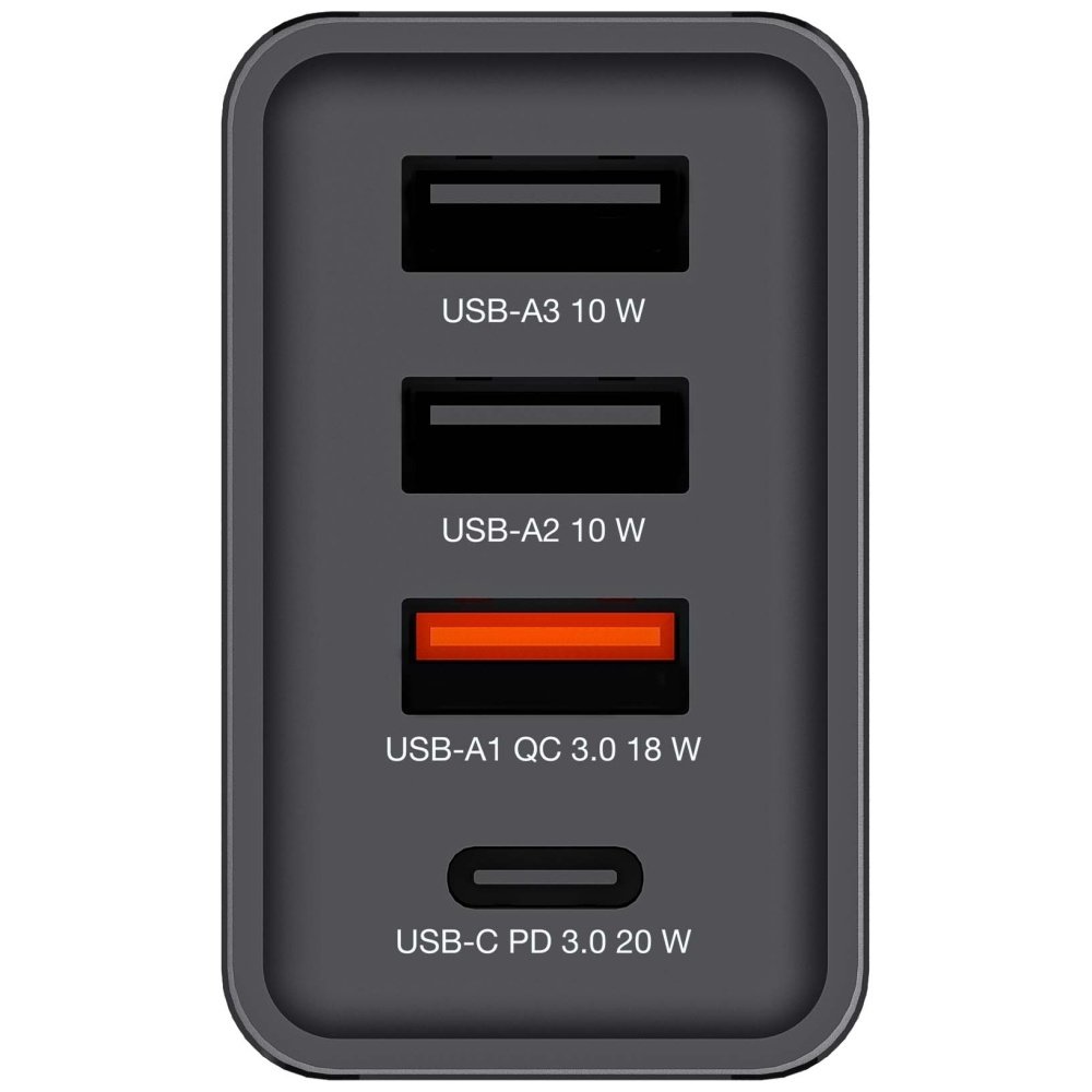 4-портовое зарядное устройство (1× USB-C PD 20W + 1× USB-A QC 3.0 18W + 2× USB-A 10W)