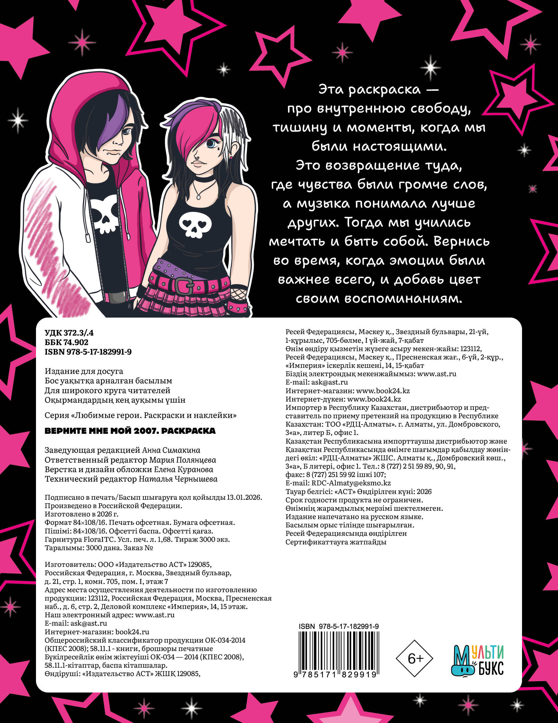 Эта раскраска - про внутреннюю свободу, тишину и моменты, когда мы были настоящими. Это возвращение туда, где чувства были громче слов, а музыка понимала лучше других. Тогда мы учились мечтать и быть собой. Вернись во время, когда эмоции были важнее всего, и добавь цвет своим воспоминаниям.| Издательство | Издательство "АСТ" |