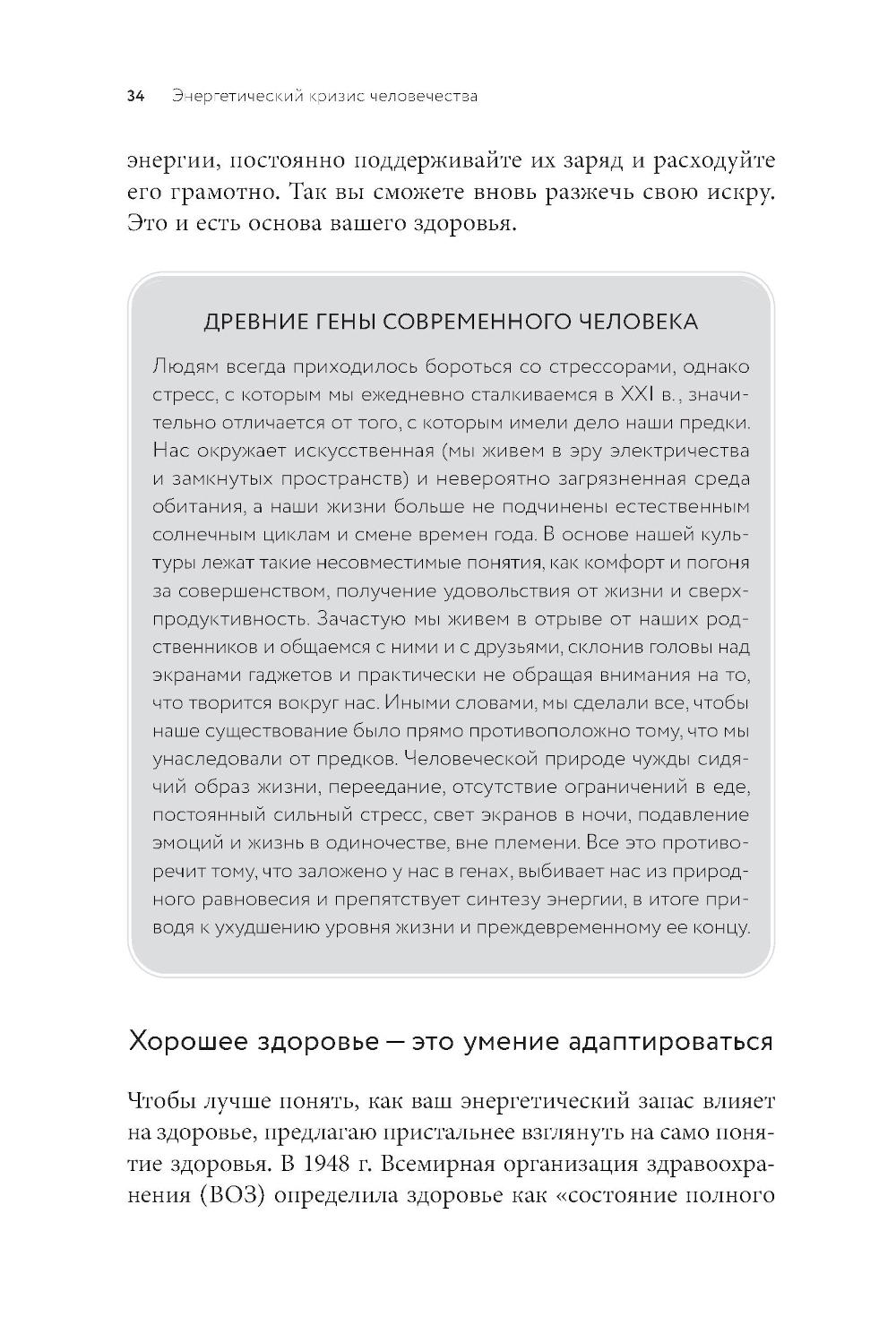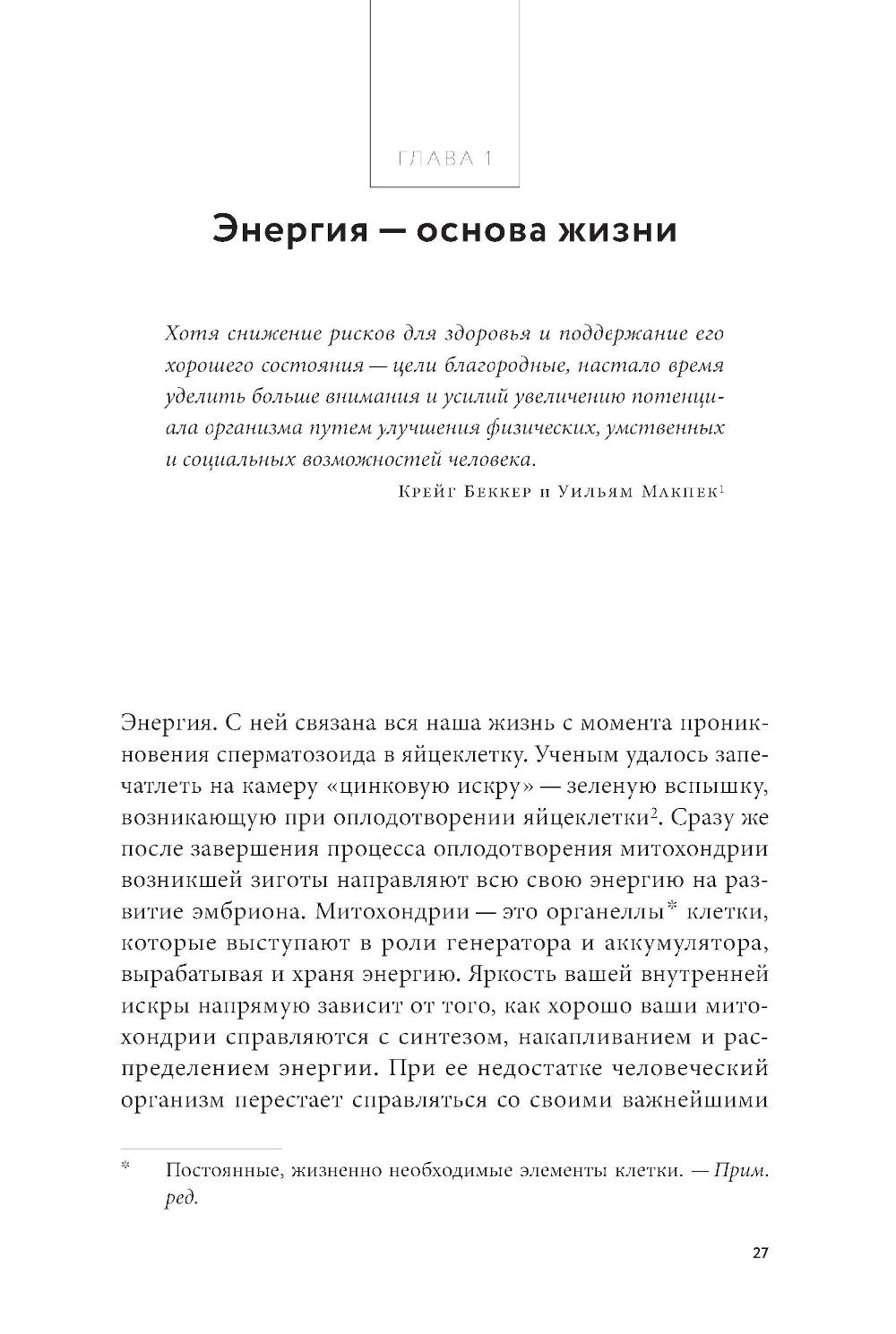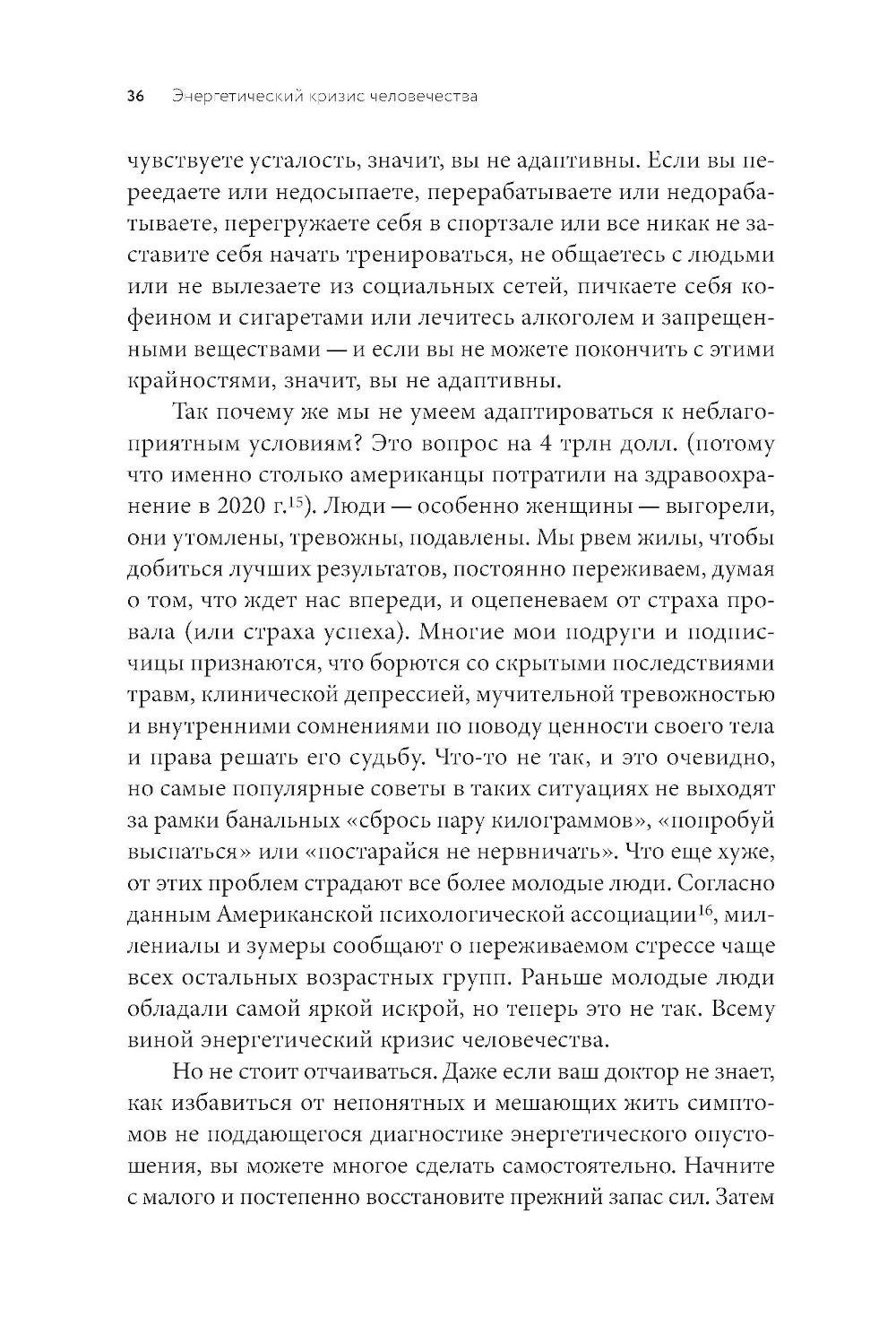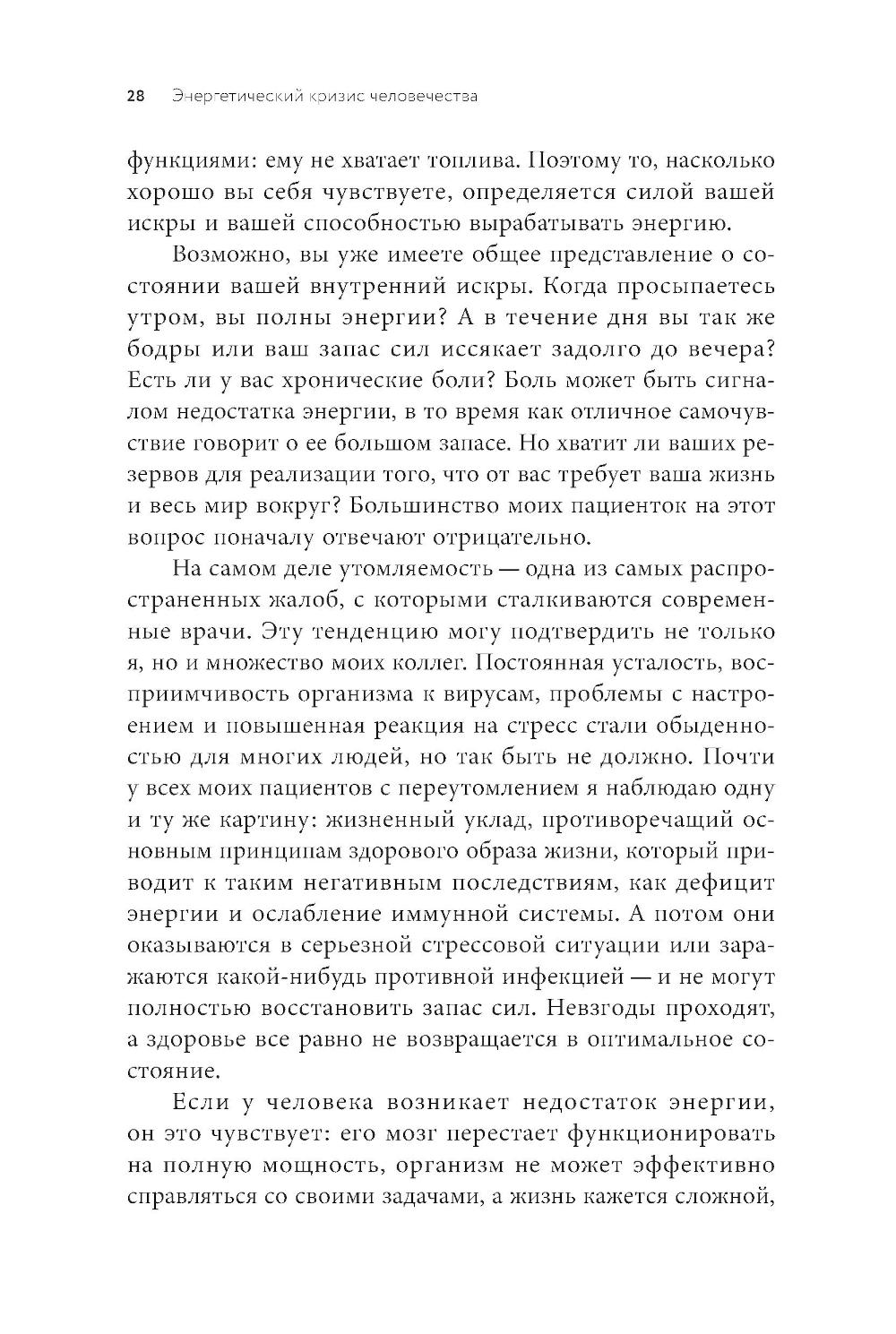 Жизнь женщины в XXI веке - это бесконечная гонка, в которой она решает огромное количество вопросов каждый день. В таком жестком ритме мы не замечаем, как запас внутренней энергии иссякает, силы покидают нас и уже с утра мы чувствуем усталость. Если все это про вас, книга врача-консультанта, преподавателя Стэндфордского университета и биохакера Кремниевой долины Молли Малуф - то, что вам нужно. Доктор Малуф создала инновационную методику восстановления жизненной энергии и профилактики хронических заболеваний для женщин, которую успешно практикуют ее пациентки. Программа помогает скорректировать питание, наладить гормональное здоровье, составить план сбалансированных тренировок, научиться контролировать уровень стресса и вовремя замечать «сигналы небезопасности», которые посылает ваш организм. На страницах этой книги вы найдете научно обоснованные рекомендации, которые уже помогли тысячам женщин во всем мире.
