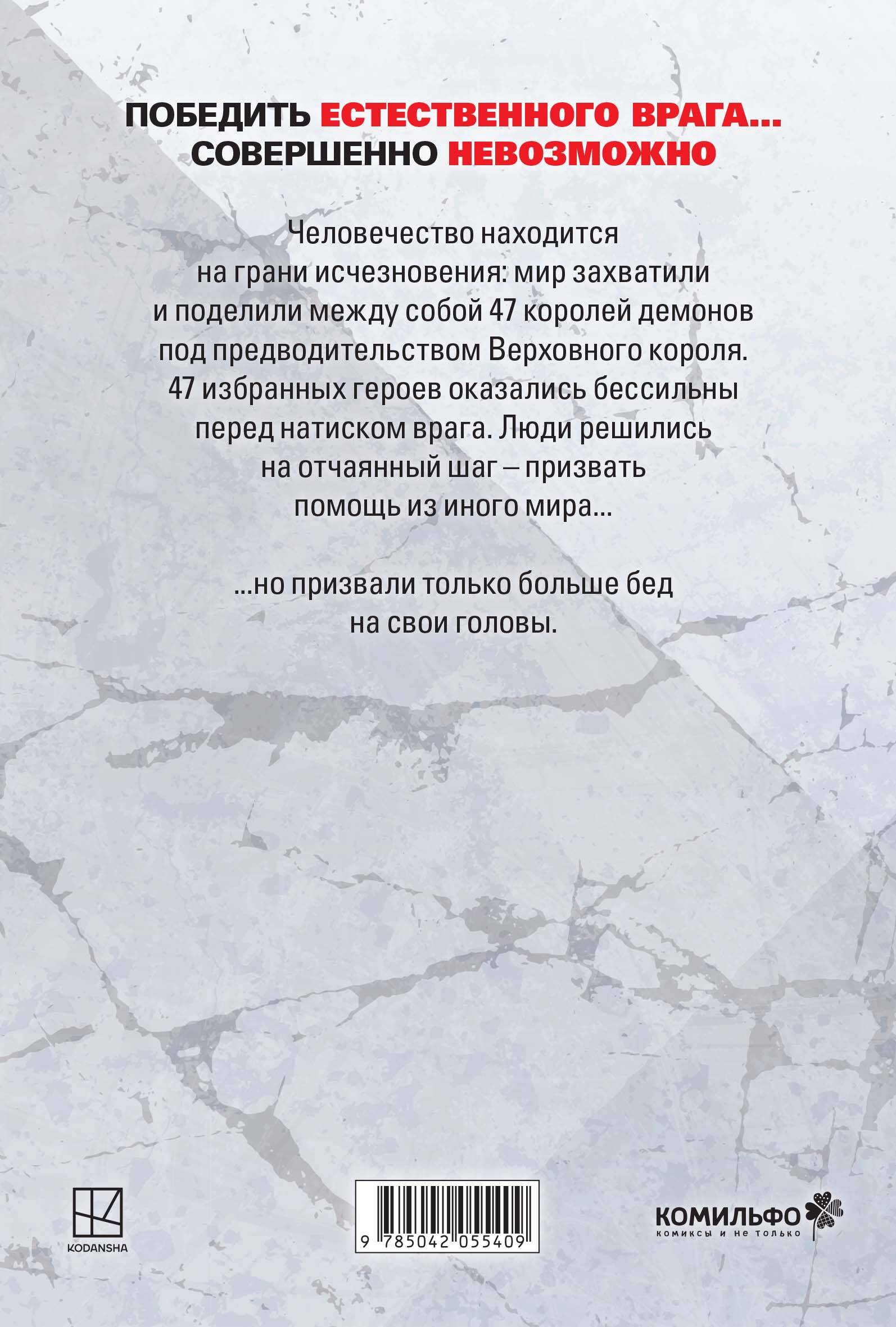 ПОБЕДИТЬ ЕСТЕСТВЕННОГО ВРАГА… СОВЕРШЕННО НЕВОЗМОЖНО Суперзвезда боевой и комедийной манги, автор самых безумных и интригующий идей - мангака ONE запускает новую амбициозную серию, грозящуюся переплюнуть даже легендарного One-punch Man! В этом постмодернистском творческом котле замешано всё, что есть весёлого в поп-культуре - фэнтези и научная фантастика, постапокалипсис и киберпанк… место нашлось даже кайдзю! Ультимативный исекай стартует с истории гибели человечества: демоны завоевали всю Землю и почти истребили людской род. 47 избранных героев, вооружённых магическими мечами, пали перед натиском армии Верховного короля демонов. Отчаявшись, люди призвали на помощь цивилизацию из иного мира… но в итоге получили только больше проблем на свои головы.| Издательство | ООО "Издательство "Эксмо" |