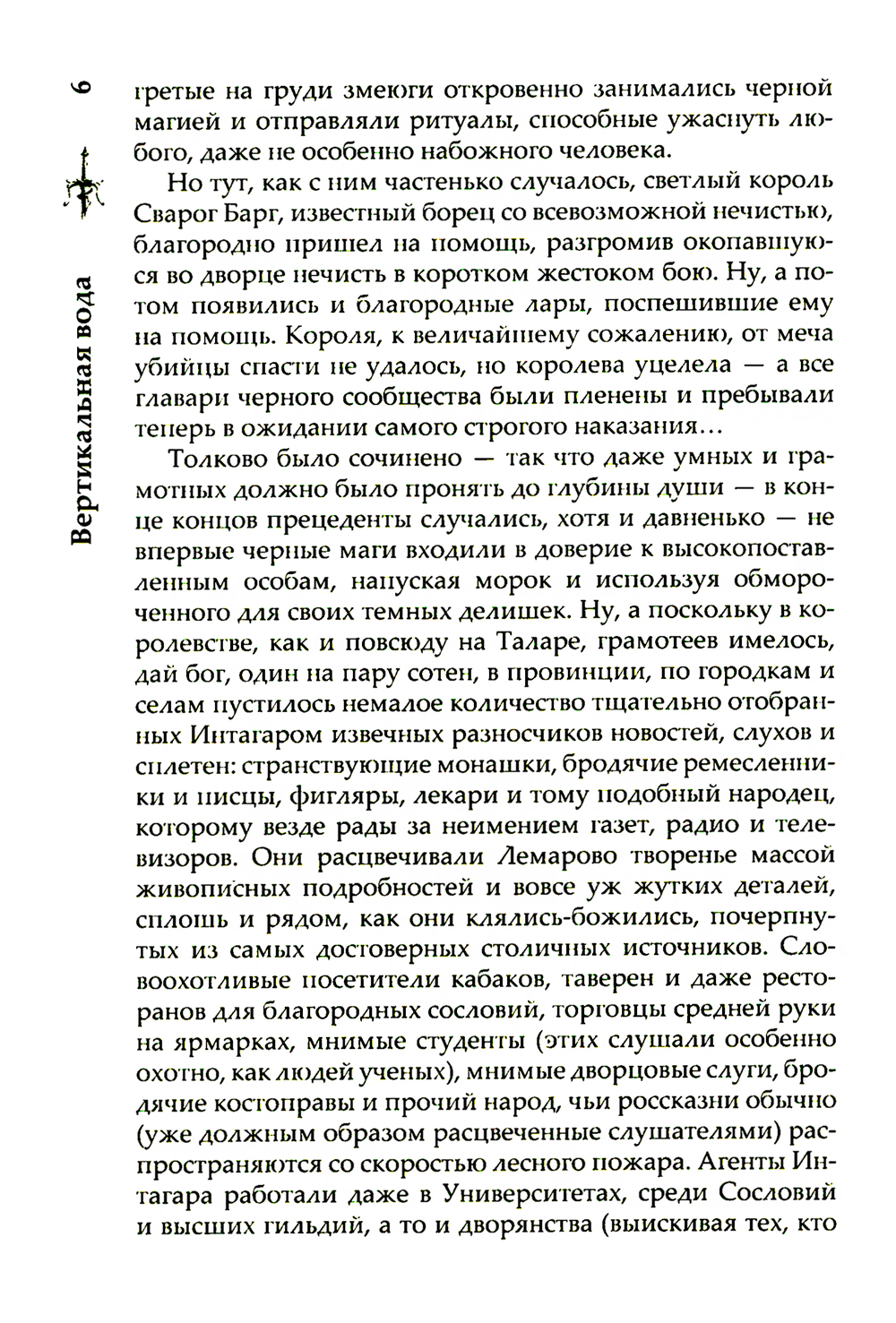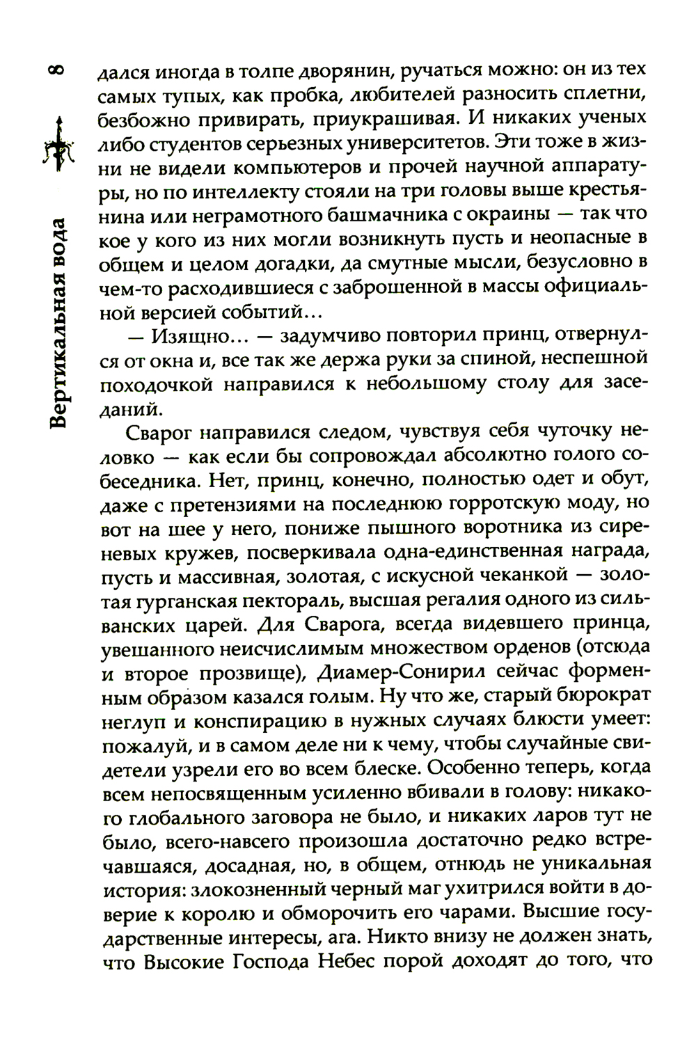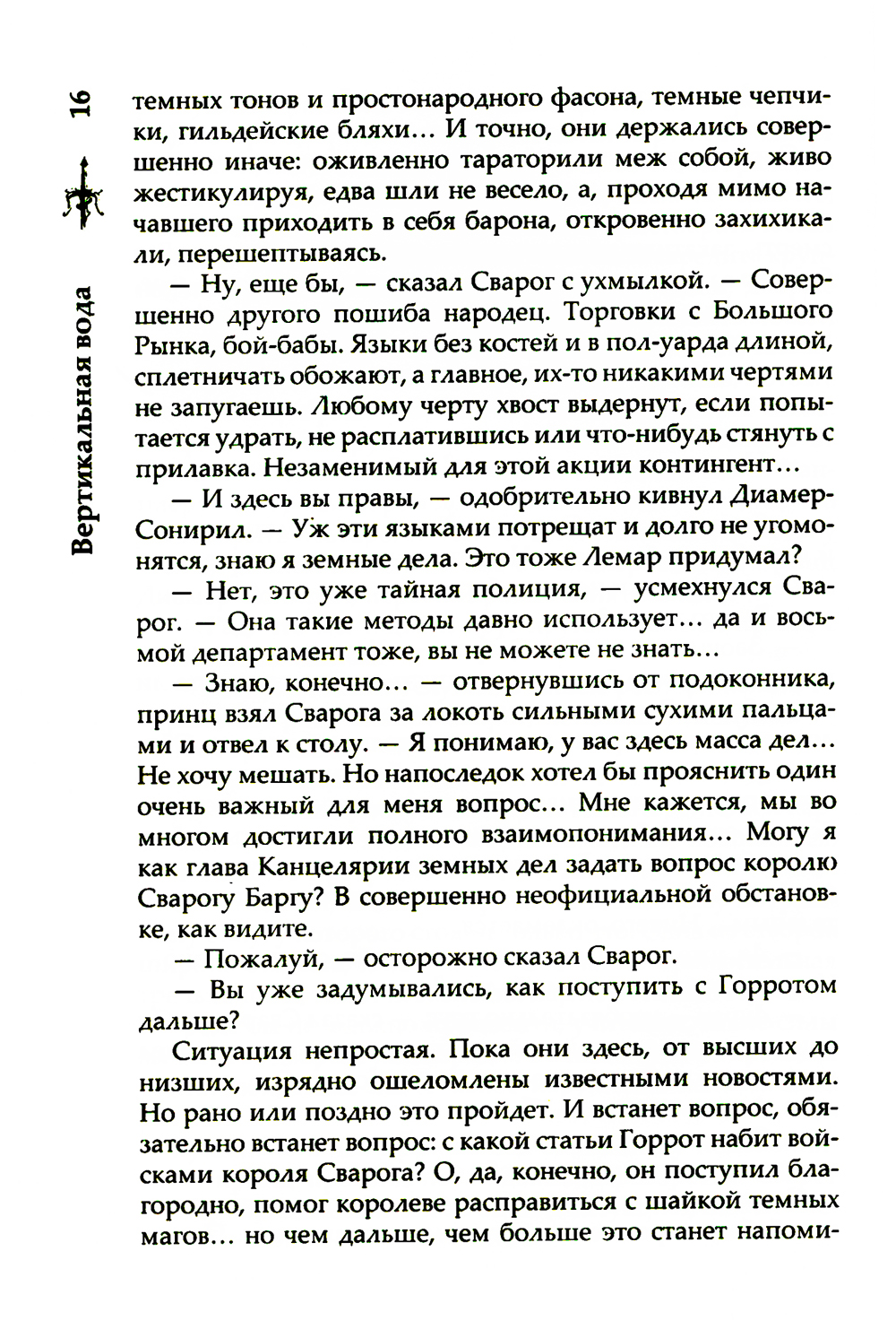 Остатки заговора в Горроте все еще тлеют, но взгляд Сварога и Странной Компании уже обращен в сторону Токеранга. Будут ли это новые увлекательные приключения, или старых друзей на этот раз ждет всего лишь самая грязная работа? А все сомнения и боль смоет с души, как вода... Вертикальная вода. И тогда можно будет спросить себя: «А был ли Токеранг?.. Может быть, его никогда и не было».