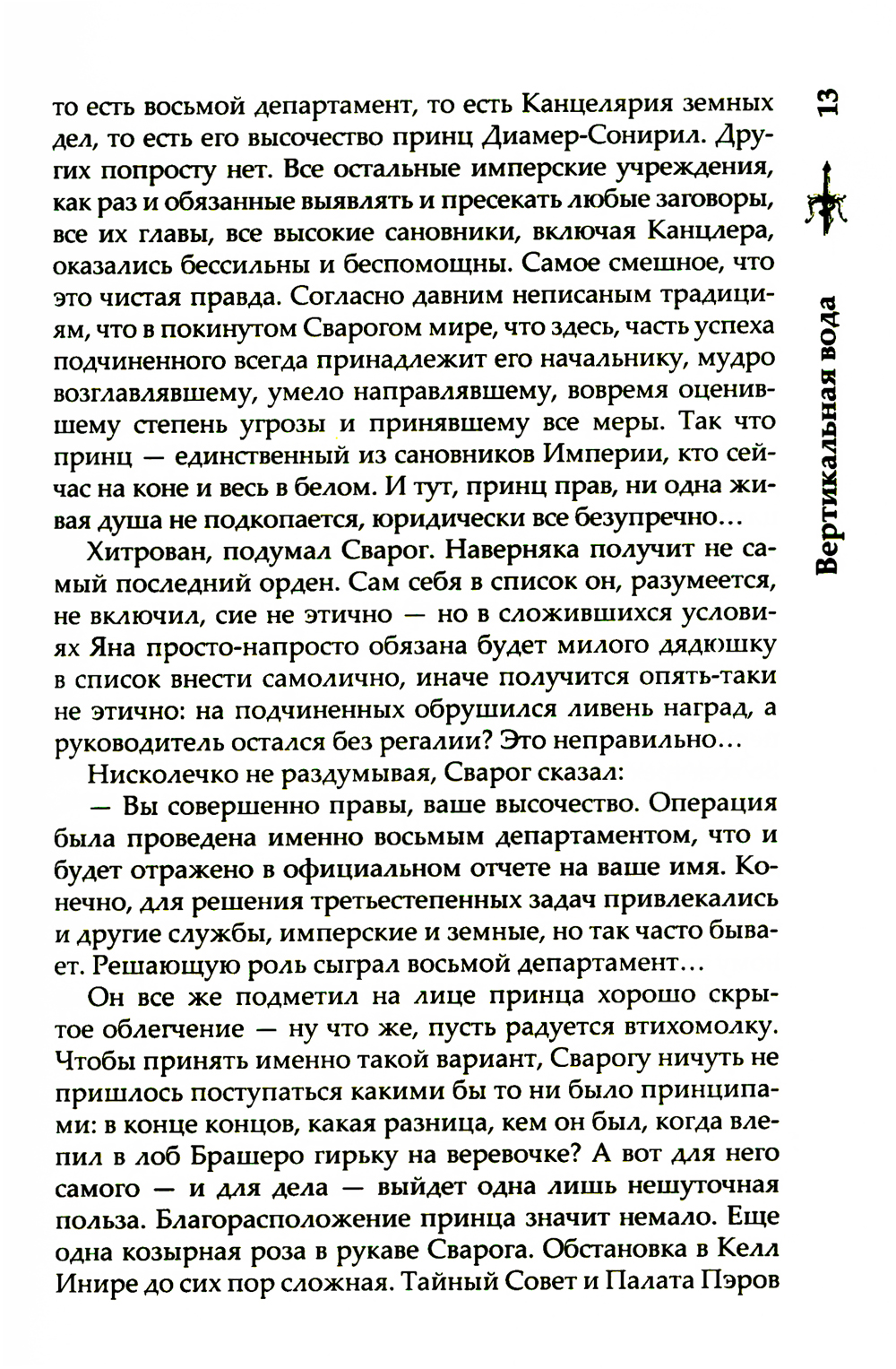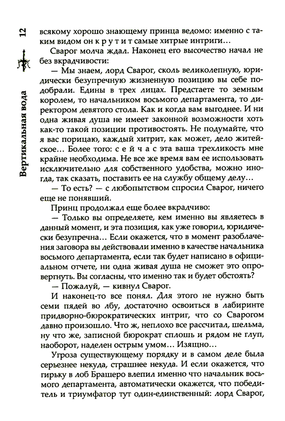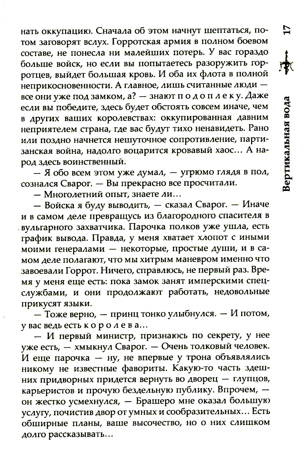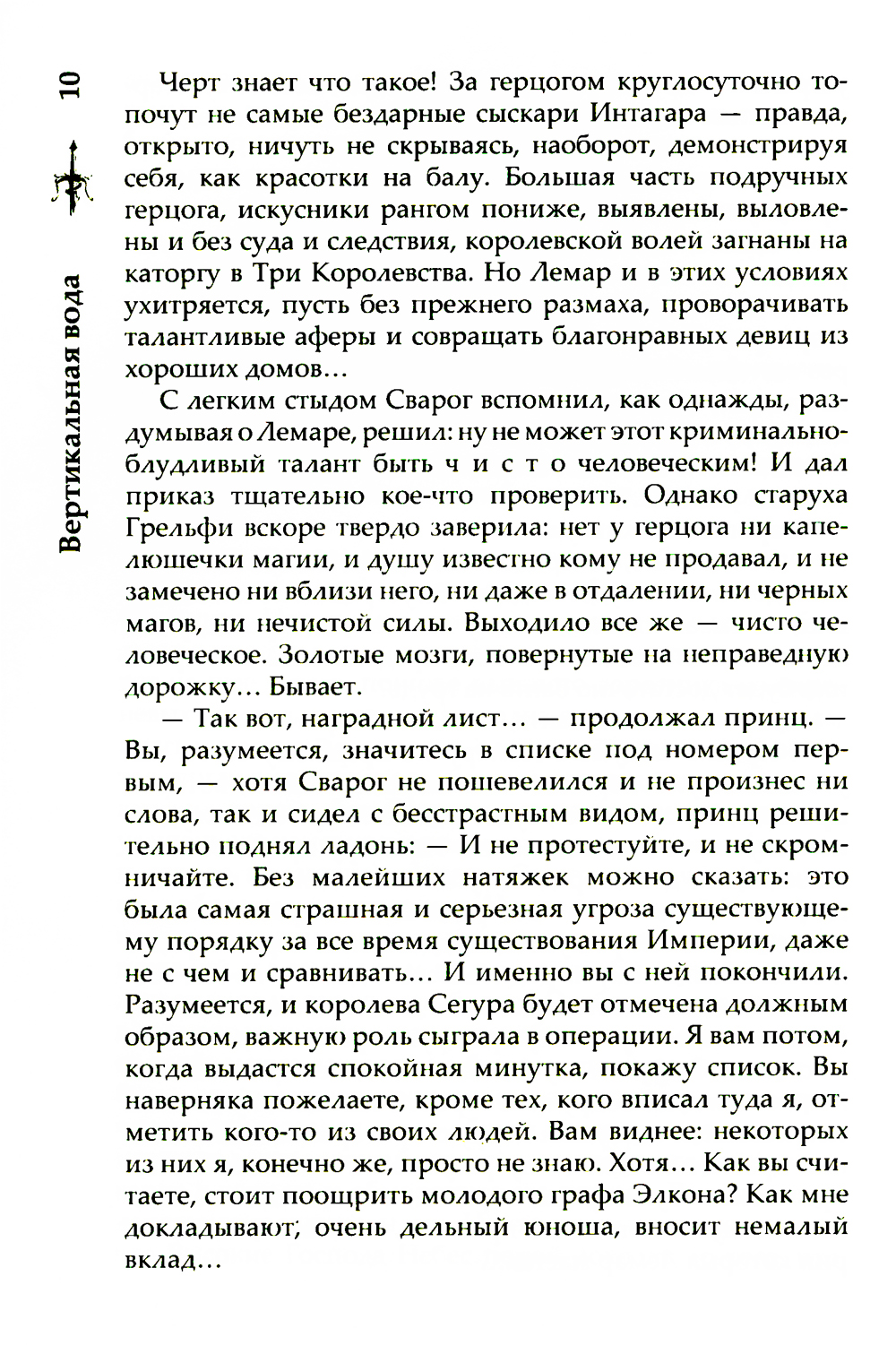 Остатки заговора в Горроте все еще тлеют, но взгляд Сварога и Странной Компании уже обращен в сторону Токеранга. Будут ли это новые увлекательные приключения, или старых друзей на этот раз ждет всего лишь самая грязная работа? А все сомнения и боль смоет с души, как вода... Вертикальная вода. И тогда можно будет спросить себя: «А был ли Токеранг?.. Может быть, его никогда и не было».