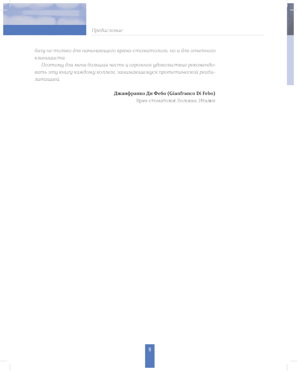 Книга посвящена традиционному протезированию зубов и представляет собой подробное руководство по изготовлению металлокерамических и цельнокерамических коронок с использованием методики вертикального препарирования. Методика вертикального препарирования имеет определённые технические отличия от традиционного использования дизайна горизонтальных уступов. По мнению авторов, предлагаемый протокол обеспечивает оптимальный результат стоматологической ортопедической реабилитации. Для врачей-стоматологов-ортопедов, стоматологов общей практики, зубных техников и студентов высших учебных заведений.| Издательство | Таркомм |
