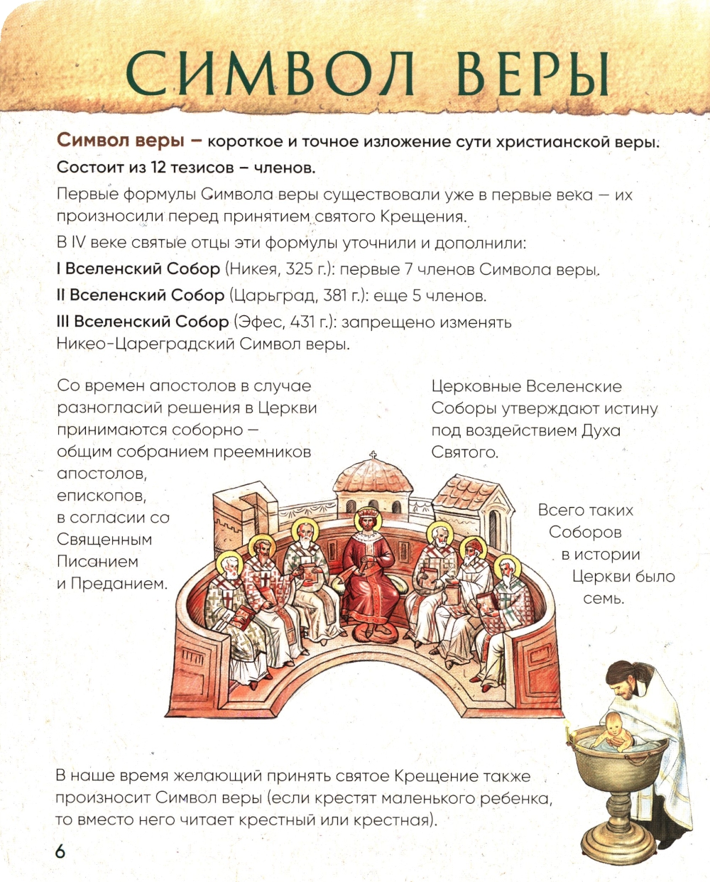 Символ Веры - короткое и точное изложение сути православной веры, составленное и утвержденное Вселенскими Церковными Соборами. О Боге, о вере, о Церкви, о смысле жизни каждого человека и всей вселенной исчерпывающе повествует этот молитвенный текст, который поётся на литургии не только хором, но всеми молящимися. Каждый, кто считает себя православным христианином, должен знать и понимать Символ Веры. В этой книге вы найдёте: - доступное для детей, подростков и взрослых наглядное объяснение Символа Веры: - по Священному Писанию и учению святых отцов, - по катехизисам, с отсылками к истории, географии, русской и мировой культуре; - изложение не только теории, но и практики жизни в духе Православия; - вопросы для самопроверки разных уровней сложности; - простые схемы и красочные иллюстрации. Книга предназначена для родителей, педагогов и крёстных, которые хотят объяснить детям основы веры, а также для всех, кто интересуется основами христианского учения, истоками русской и мировой культуры. От автора книг «Литургия. Самая главная служба», «Всенощная. Вечерняя служба», «Великий Пост. Шаг за шагом к Пасхе» и других популярных интерактивных пособий для детей и взрослых.