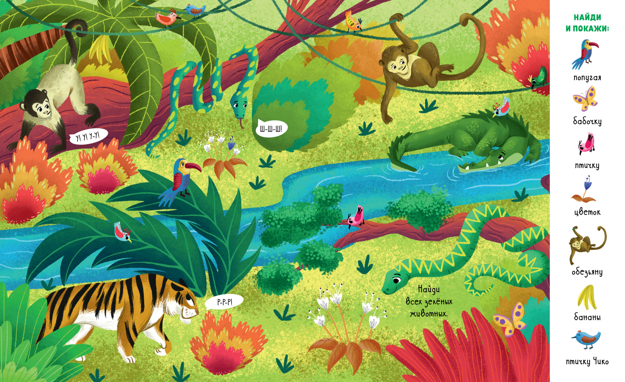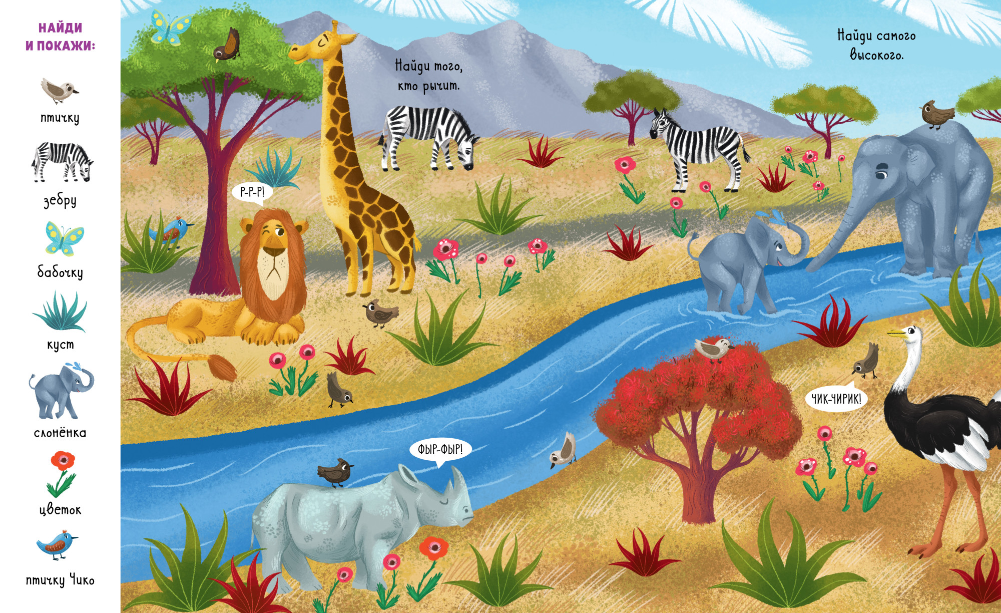 На каждой страничке есть дополнительное задание: отыскать маленькую птичку Чико, которая оказывается в самых неожиданных местах.