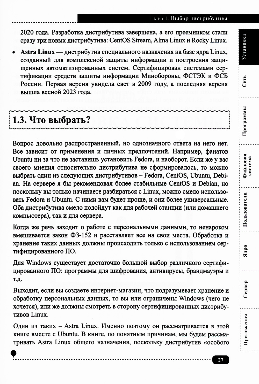 Эта книга содержит в себе как теоретические, так и практические материалы по Linux, тем самым вы сразу сможете использовать полученную теорию на практике. Диапазон рассматриваемых тем достаточно широк: - Установка системы, вход и завершение работы, настройка системы, основы командной строки; - Настройка Интернета, установка программного обеспечения, обзор популярных программ для Linux, как запускать Windows-приложения в Linux; - Локальное администрирование в Linux, управление файловыми системами, что такое и для чего нужно Ядро Linix, системные процессы и основные группы пользователей; - Администрирование Linux-сервера, настройка серверов DNS, SSH, DHCP, FTP, интеграция сервера в Windows-сеть, маршрутизация и настройка брандмауэра, почему так важно резервное копирование, выбор и установка панели управления, как обеспечить безопасность сервера, защита веб-сервера от сетевых атак. В дополнительных приложениях будут рассмотрены командный интерпретатор bash и сетевая файловая система NFS. Важно, что одним из дистрибутивов (наряду с Ubuntu), на котором показывается работа в Linux, выбран российский Astra Linux, сертифицированный и рекомендованный к использованию на территории России. Книга будет полезна для любого уровня читателей - как для тех, кто только заинтересовался Linux, так и для тех, кто хочет расширить свои навыки использования этой операционной системы. Поэтому каждый найдет здесь для себя что-то полезное и востребованное!