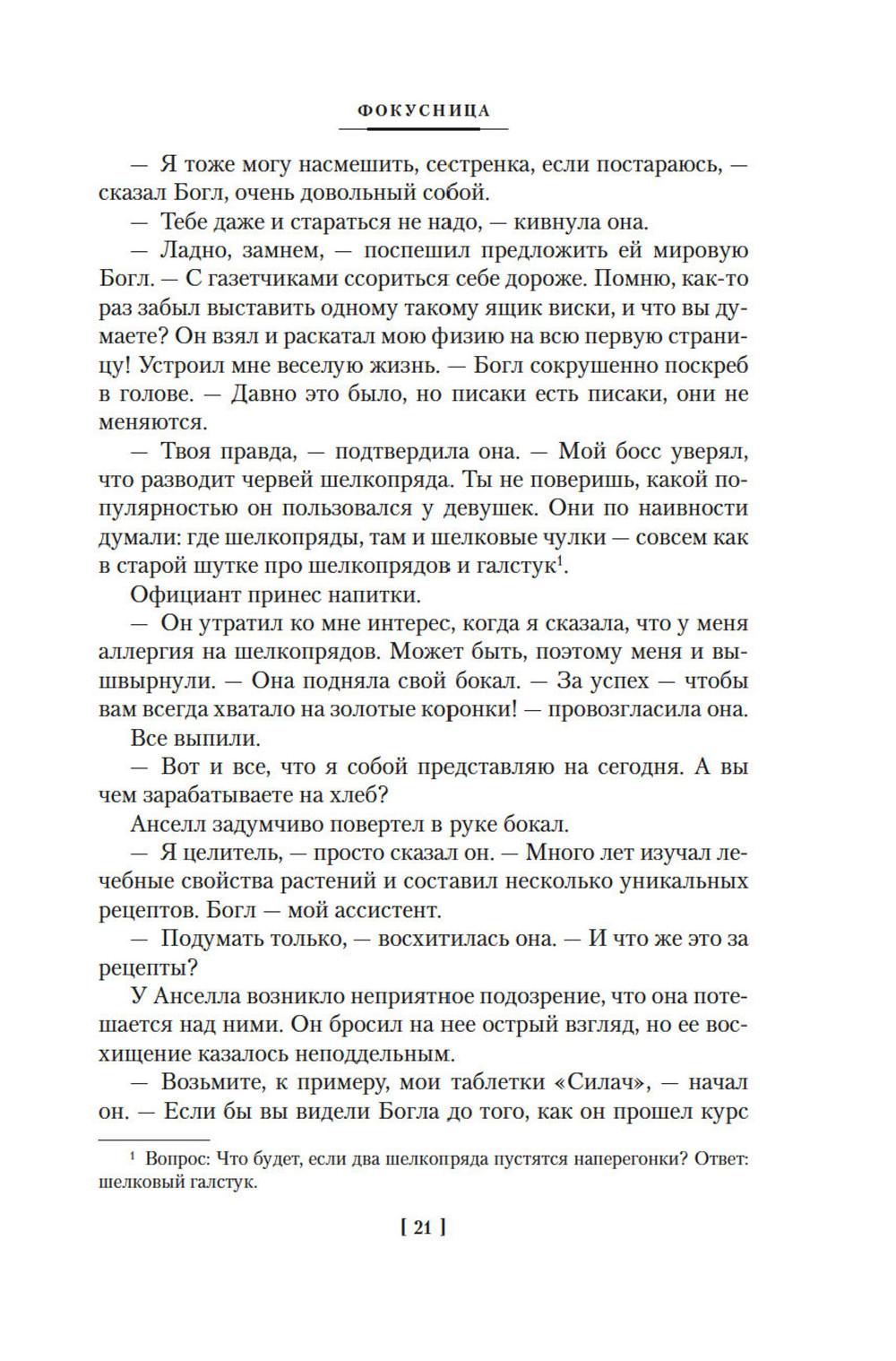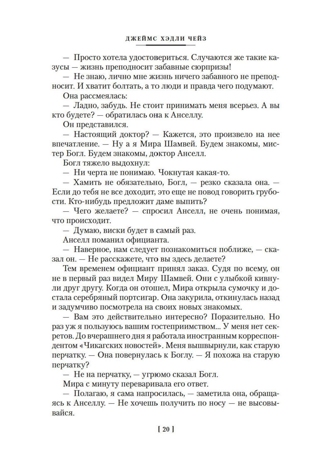 Английский писатель Джеймс Хэдли Чейз по сей день остается непревзойденным мастером детективного жанра, его произведения пользуются неизменным успехом у читателей во всем мире. За долгую творческую жизнь Чейз создал около ста романов, половина которых экранизирована. «Все, что нужно моим читателям, - добротное чтение: именно это я и стараюсь им дать...» - объяснял свой успех автор. В сборник вошли произведения Дж. Х. Чейза, написанные в 1940-1950-е годы: «Фокусница», полная приключений и искрометного юмора, чего никак не ждешь от классика «крутого детектива»; «Осторожный преступник», в котором Чейз с блеском выступил в роли Бальзака детективного жанра - исследователя человеческой души; и «Весь мир в кармане» - одно из самых известных произведений писателя, положенное в основу фильма «Мираж», снятого в 1983 году на Рижской киностудии.
