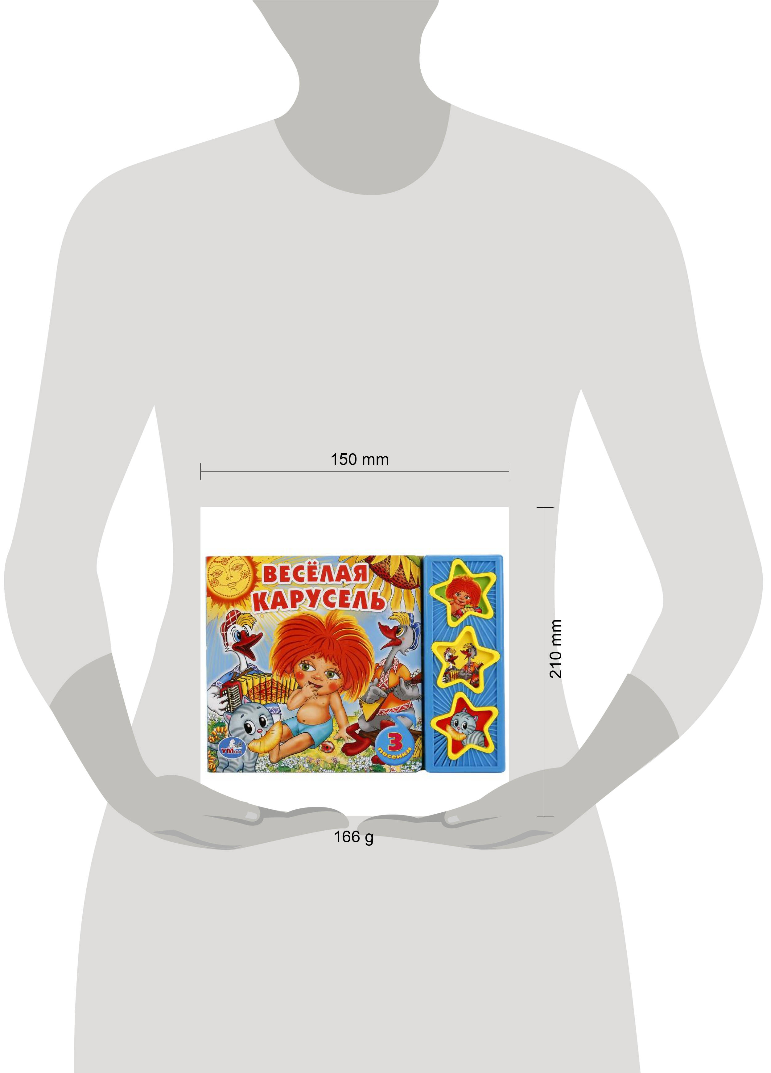 Книга "Веселая карусель" является аналогом одноименного мультфильма. На страницах книги представлен текст трех песенок из мультфильма. Все страницы книги выполнены из плотного картона, иллюстрированы яркими картинками и напоминают кадры мультфильма. С правой стороны книги есть звуковой модуль с кнопками в виде звездочек, украшенных картинками мультперсонажей. Нажимая кнопки, ребенок сможет услышать фрагменты трех представленных песенок. При повторном нажатии на кнопку - звук прекращается. Формат: 206x150 мм. Объем: 6 страниц. 3 звуковые кнопки. При нажатии кнопок звучат стишки: 1) "Антошка-Антошка, пойдем копать картошку..." 2) "Жили у бабуси 2 веселых гуся..." 3) "Мы делили апельсин...".| Издательство | С-Маркет ООО |