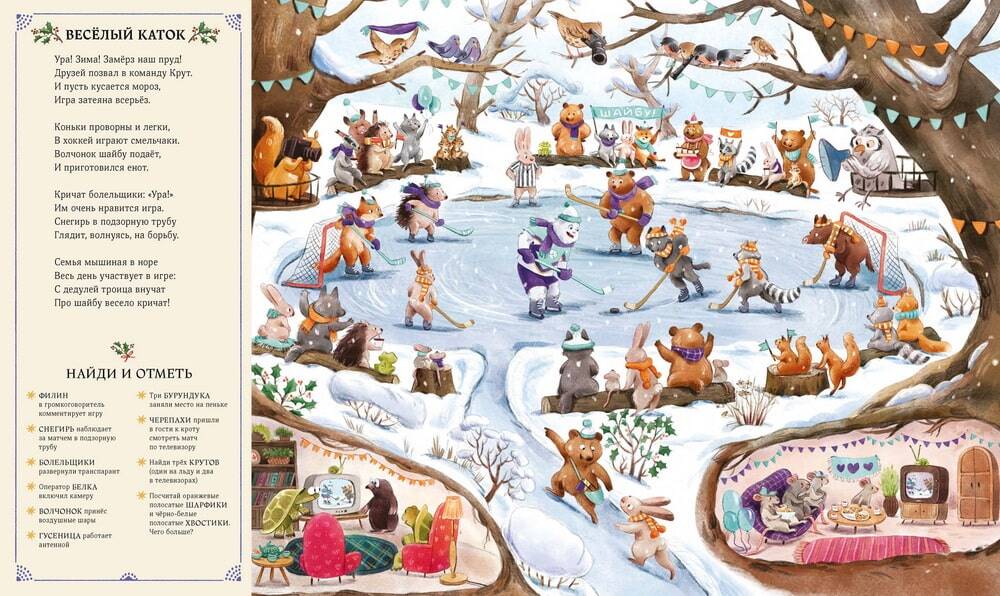 Виммельбух о нескучном досуге в разные времена года Веселые стихи и задания на внимательность Издано при поддержке Континентальной хоккейной лиги| Издательство | МИФ ООО |