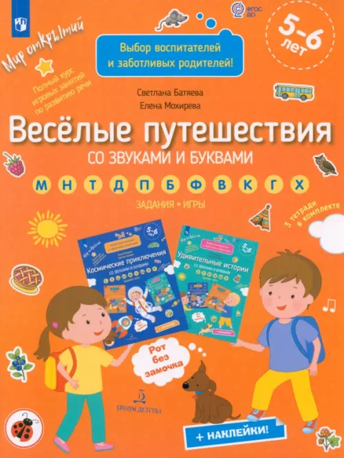 Комплект тетрадей «Рот без замочка» разработан специально для программы дошкольного образования «Мир открытий» (научный руководитель Л.Г. Петерсон). Рассчитан на целый год занятий с ребёнком 5 - 6 лет. Каждая тетрадь посвящена определённой группе звуков и букв. В первой тетради ребята познакомятся с гласными, а во второй и третьей перейдут к согласным, в том числе - самым сложным для произношения. Тетради соответствуют требованиям ФГОС дошкольного образования, заниматься по ним можно как в детском саду, так и дома. В тетрадях можно и нужно рисовать, раскрашивать, приклеивать многоразовые наклейки. Но самое главное - все задания легко превращаются в настоящие живые игры за границами тетрадей! На прогулке и дома, в магазине и в детском кафе. С мячом, с тетрадкой и карандашами, с игрушками, одеждой, кастрюльками и сковородками. Играйте и говорите, общайтесь, обсуждайте всё, что видите вокруг, слушайте внимательно!