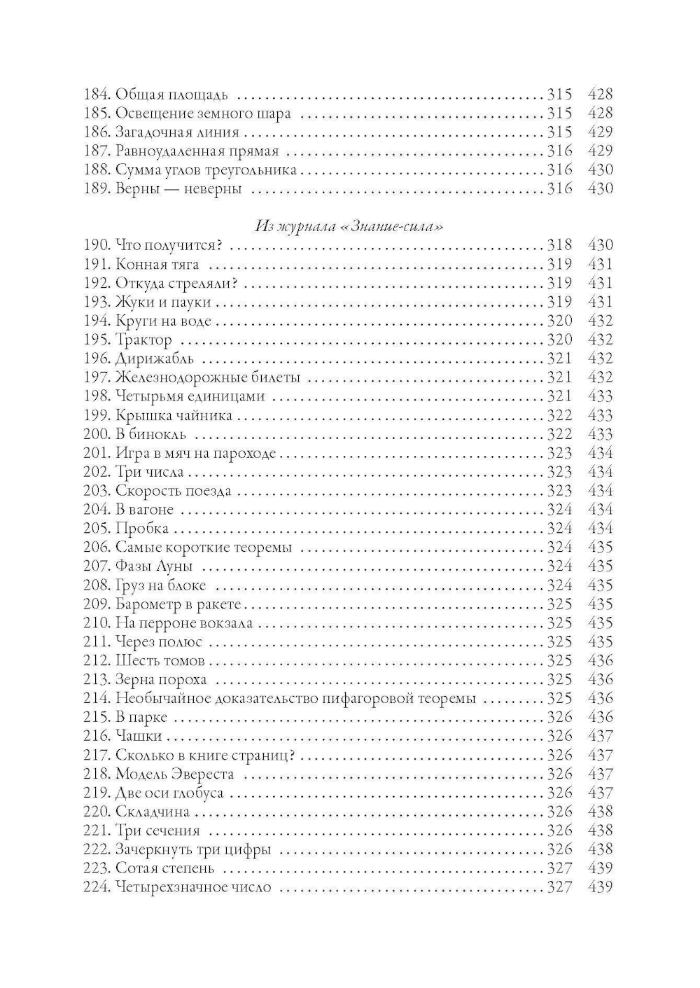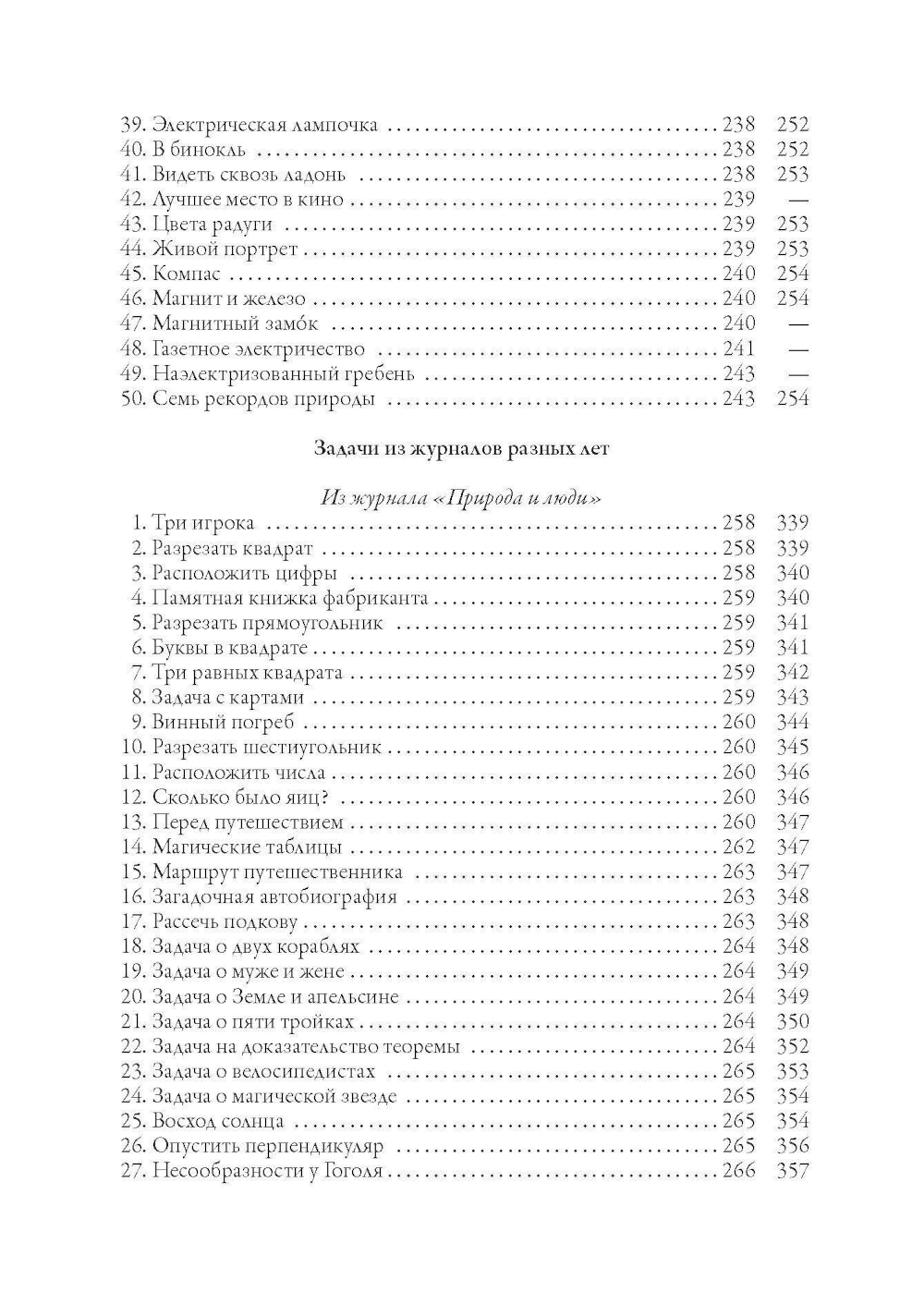 В настоящий сборник вошли четыре сочинения Перельмана - книги «Для юных математиков. Первая сотня головоломок» и «Для юных математиков. Вторая сотня головоломок», главы из коллективного сборника «Наука на досуге» и подборка избранных вопросов и задач, опубликованных автором в 1906-1940 гг. в различных российских и советских журналах. При редактировании были лишь заменены некоторые устаревшие цифры и сделаны отдельные дополнения и примечания. При этом по возможности сохранялся дух того времени, когда эти статьи создавались. Тогда самолет обычно называли аэропланом, Альберт Эйнштейн был скромным служащим Бюро патентов, а английский фантаст Герберт Уэллс радовал читателей своими новыми сочинениями. Однако научное содержание статей Якова Исидоровича не устареет никогда. Большинство рисунков в сборнике, исключая публикации в журналах, выполнены штатным художником ленинградского издательства «Время» Юрием (Георгием) Дмитриевичем Скалдиным (1891-1951), который работал в тесном контакте с самим Перельманом.| Издательство | СЗКЭО |