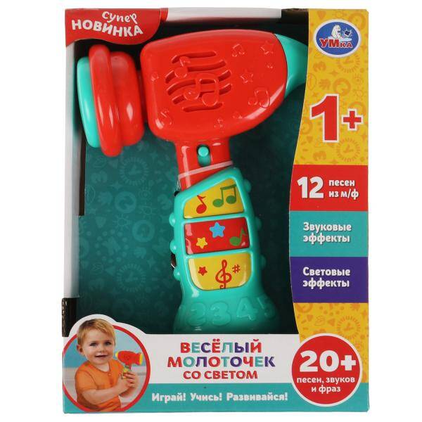 Музыкальная игрушка "Весёлый молоточек" ТМ "УМка" - отличный подарок для ребенка: - 12 песен из м/ф - звуковые эффекты - световые эффекты - переключатель Вкл./Выкл. Ребёнок с удовольствием будет играть этим ярким молоточком со звуковыми и световыми эффектами, нажимать на красочные кнопки и слушать весёлые звуки и песенки из мультфильмов. Музыкальная игрушка ТМ "УМка" развивает: - слуховое восприятие и музыкальный слух - тактильные навыки - визуальное восприятие - логическое мышление - мелкую моторику Размер: 25х 14 х 8 см. Материал: пластмасса. Работает от 1 батарейки типа АА. Рекомендовано детям от 1 года.| Издательство | С-Маркет ООО |