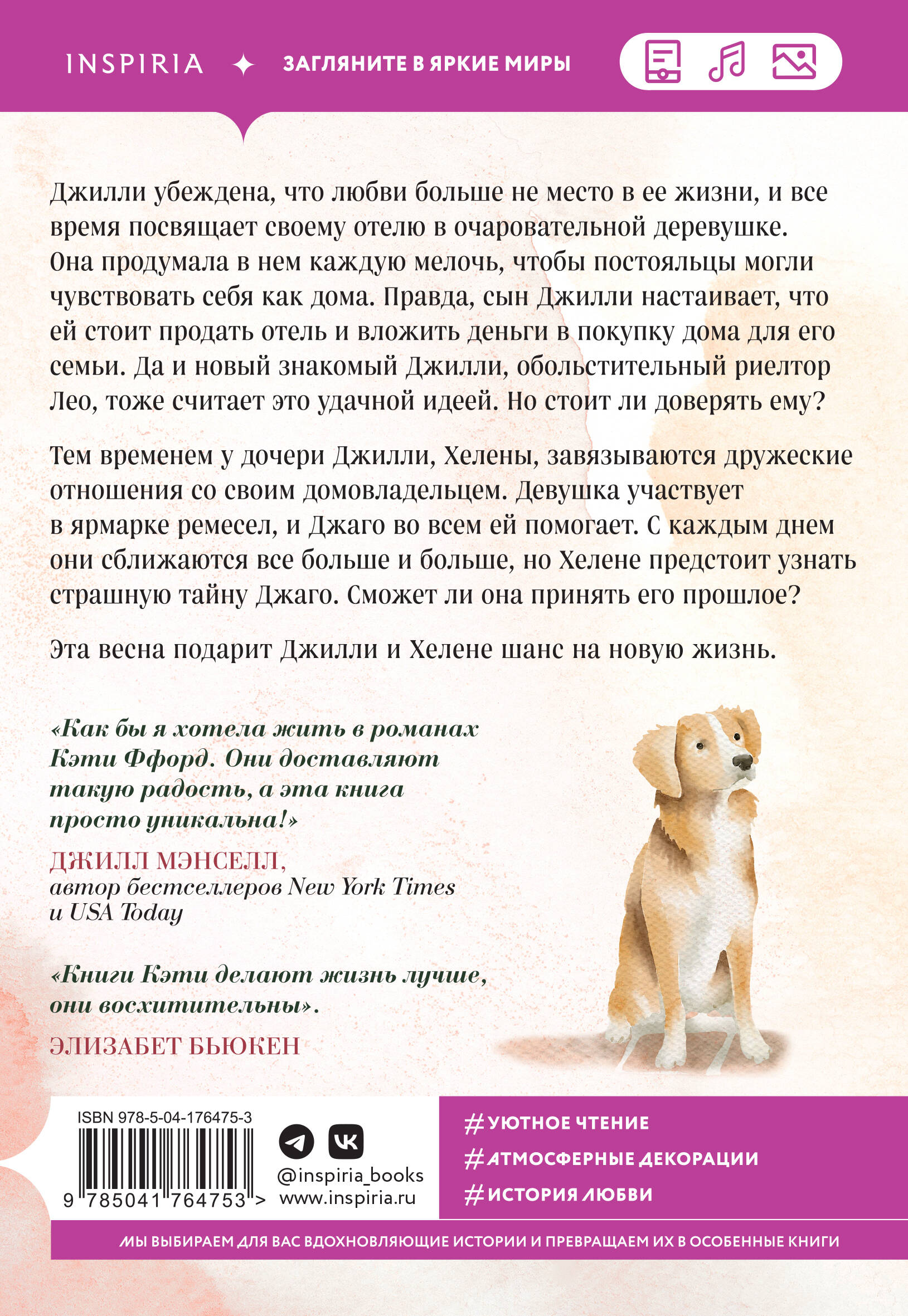 Новинка! Идеальная книга для поклонников романов Джули Кэплин и Дженни Колган. Джилли убеждена, что любви больше не место в ее жизни, и все время посвящает своему отелю в очаровательной деревушке. Она продумала в нем каждую мелочь, чтобы постояльцы могли чувствовать себя как дома. Правда, сын Джилли настаивает, что ей стоит продать отель и вложить деньги в покупку дома для его семьи. Да и новый знакомый Джилли, обольстительный риэлтор Лео, тоже считает это удачной идеей. Но стоит ли доверять ему? Тем временем у дочери Джилли, Хелены, завязываются дружеские отношения со своим домовладельцем. Девушка участвует в ярмарке ремесел, и Джаго во всем ей помогает. С каждым днем они сближаются все больше и больше, но Хелене предстоит узнать страшную тайну Джаго. Сможет ли она принять его прошлое? Эта весна подарит Джилли и Хелене шанс на новую жизнь. «Как бы я хотела жить в романах Кэти Ффорд. Они доставляют такую радость, а эта книга просто уникальна!» - Джилл Мэнселл «Книги Кэти делают жизнь лучше, они восхитительны». - Элизабет Бьюкен| Издательство | ООО "Издательство "Эксмо" |
