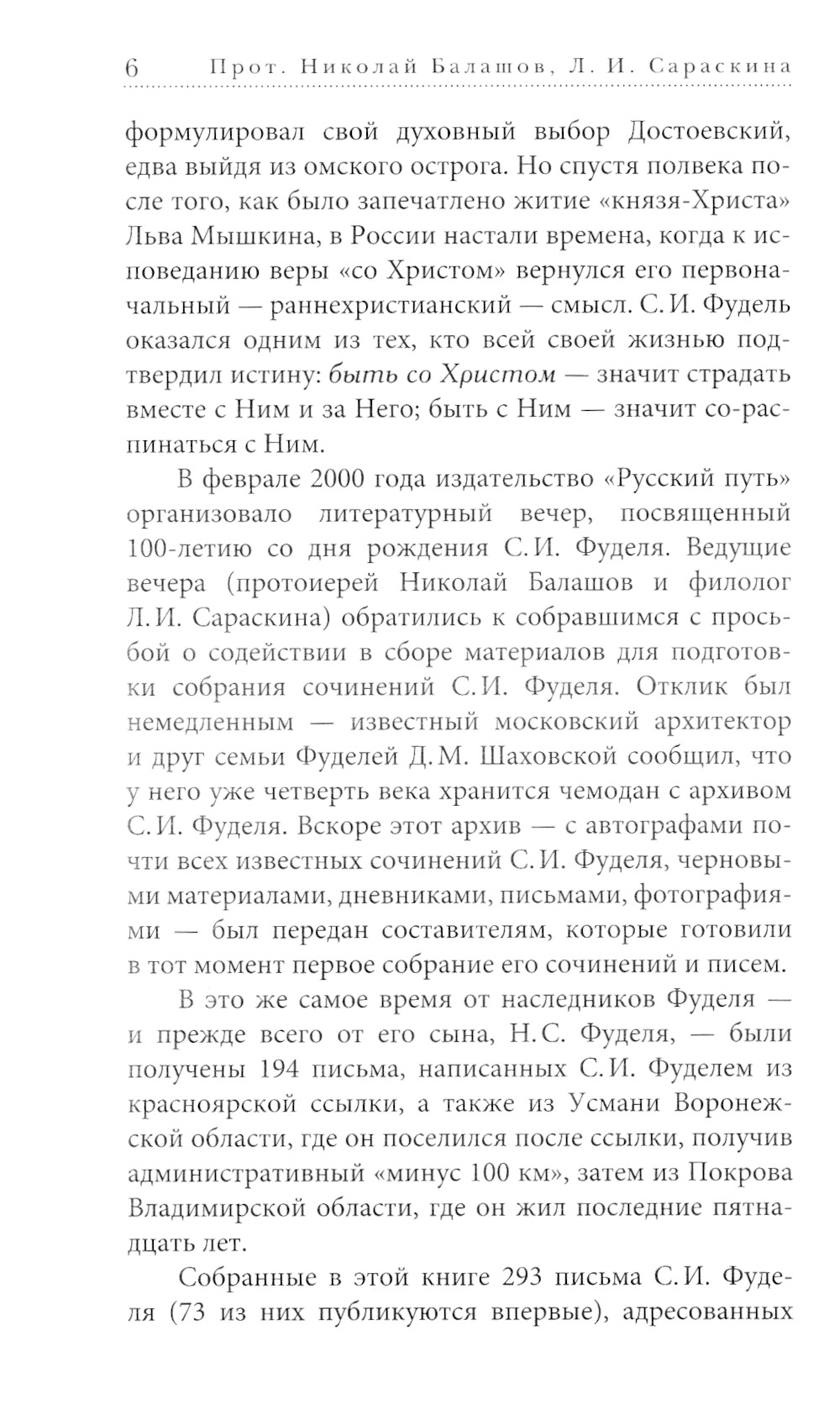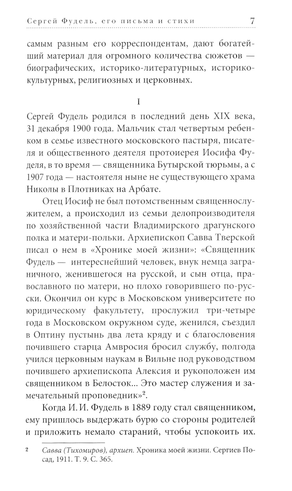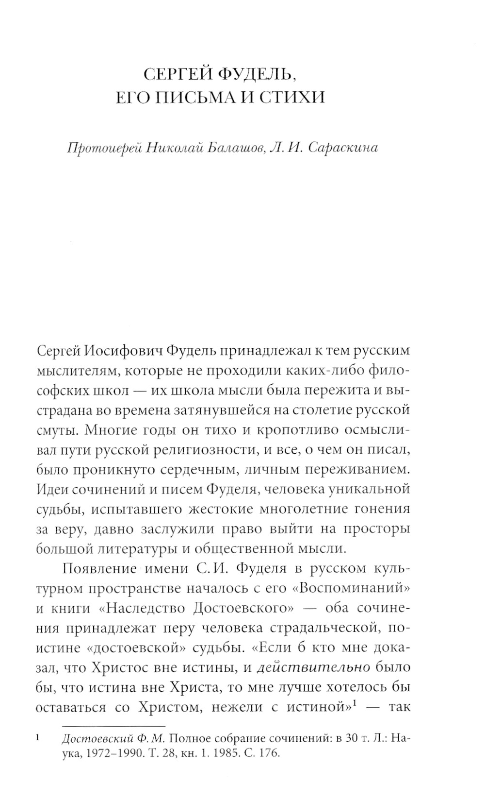 Сергей Иосифович Фудель (1900-1977) - один из тех русских мыслителей ушедшего века, чьей школой веры и мысли оказались не университеты и духовные академии, а сама жизнь в Церкви в условиях невиданных доселе гонений. Сыну известного московского протоиерея Иосифа Фуделя довелось в своей жизни пройти скорбным исповедническим путем, испытав и аресты, и тюремные заключения, и ссылки. Его размышления о вере и христианской жизни ни в малейшей степени не сухое теоретизирование, а личный, глубоко внутренний выстраданный опыт спасительности Церкви. В то же время удивительным образом этот опыт отнюдь не субъективен - он рождался из многолетнего общения с живыми носителями церковной традиции, святыми подвижниками и исповедниками веры. Собранные в этом издании 293 письма С.И. Фуделя (многие из которых публикуются впервые, в том числе ранние письма 1920-1930-х гг. и целый ряд писем 1960-1970-х гг.), адресованные самым разным людям, дают богатейший материал огромного диапазона - от биографических и историко-литературных до религиозных и церковных сюжетов. В приложении публикуются все стихотворения С.И. Фуделя, большинство из них - впервые. Их ценность далеко выходит за пределы биографического интереса, они убедительно свидетельствуют о подлинном поэтическом даре. Все публикуемые тексты снабжены комментарием.| Издательство | ПСТГУ |