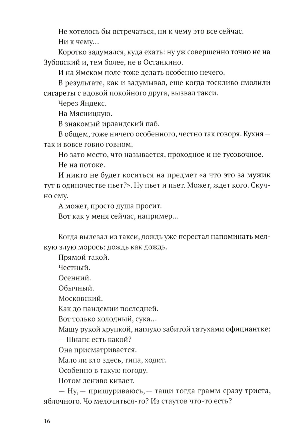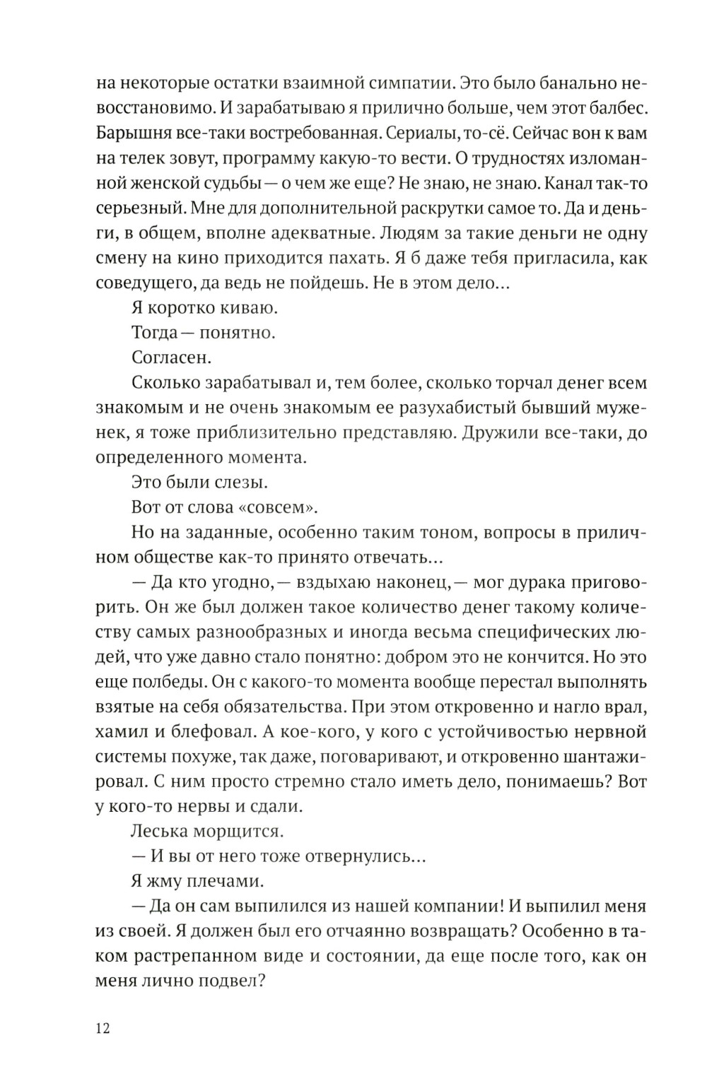 Дмитрий Лекух из тех писателей, кто любит читателя сперва увлечь, а после огорошить. Это стало понятно еще после его первой «хулиганской» трилогии о футбольных фанатах, которую люди нулевых читали как «правду об околофутбольном движе» (завершающий трилогию роман «Я русский» даже называли своеобразным манифестом поколения). А сейчас читают уже своим детям просто как «романы воспитания». Вот и «Вещи мертвого человека» можно рассматривать как правду о современном медиа-рынке. Там есть и «схематоз черного пиара», и таинственное нераскрытое убийство, и мажоры, сидящие на деньгах, и красотки актрисы. И реальные сумрачные коридоры «Останкино» - в их закрытой для посторонних части, где мир медиа смыкается с миром денег и власти. Но на самом деле это роман об уходящей Москве, о длинной больной осени «между ковидом и войной». О разрушенной дружбе, неизбежности смерти, о кризисе среднего возраста и о том, что главным врагом любого человека все равно оказывается только он сам.| Издательство | Евразийское Книжное Агентство |