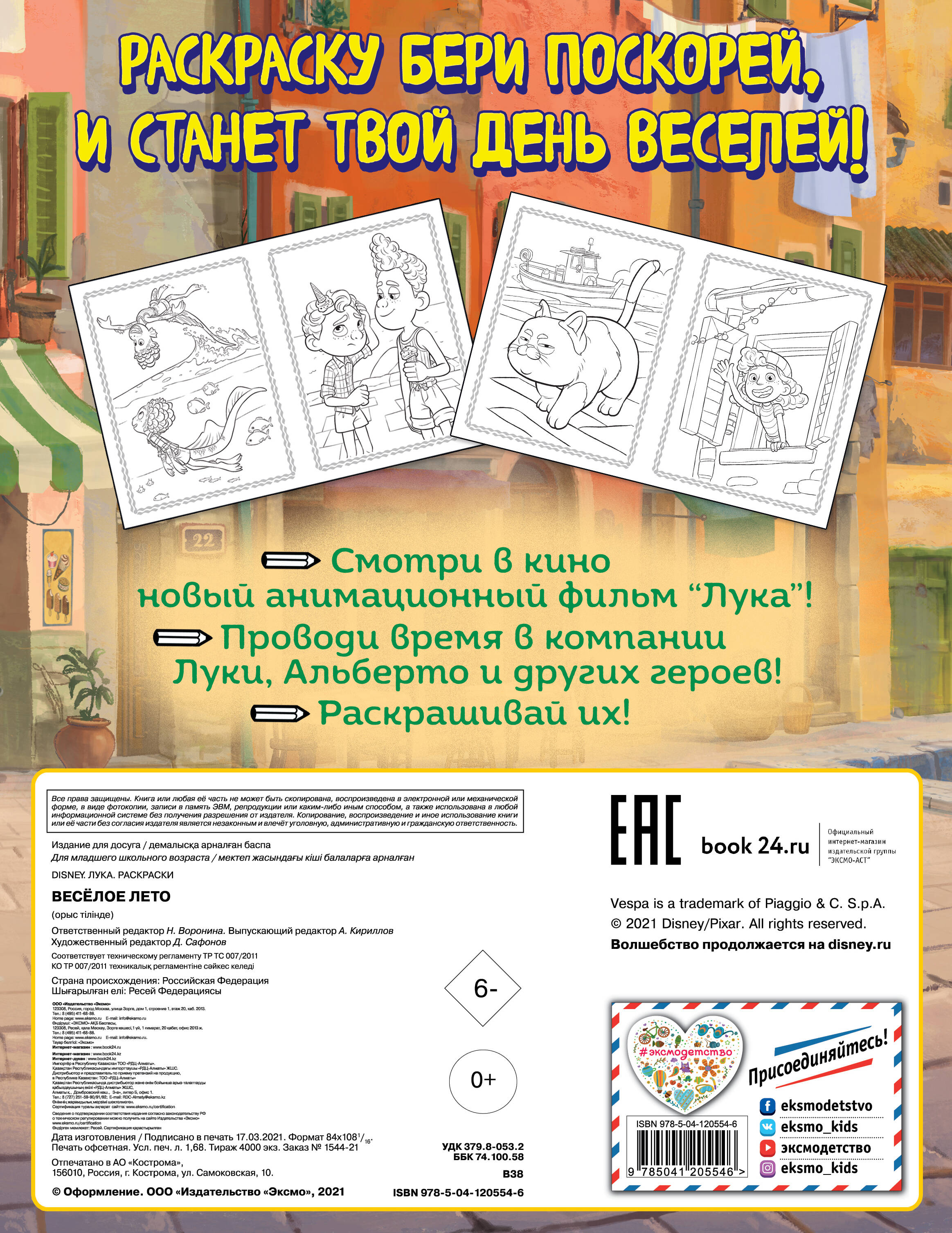 В этой книжке тебя ждут Лука, Альберто и другие герои нового мультфильма Disney «Лука». Смотри кино и раскрашивай картинки! • С нетерпением ждёшь новый анимационный фильм «Лука»? • Мечтаешь о невероятных приключениях? • Любишь рисовать и раскрашивать? • Тогда эта книжка - то, что тебе нужно! • Скорее бери цветные карандаши!| Издательство | ООО "Издательство "Эксмо" |
