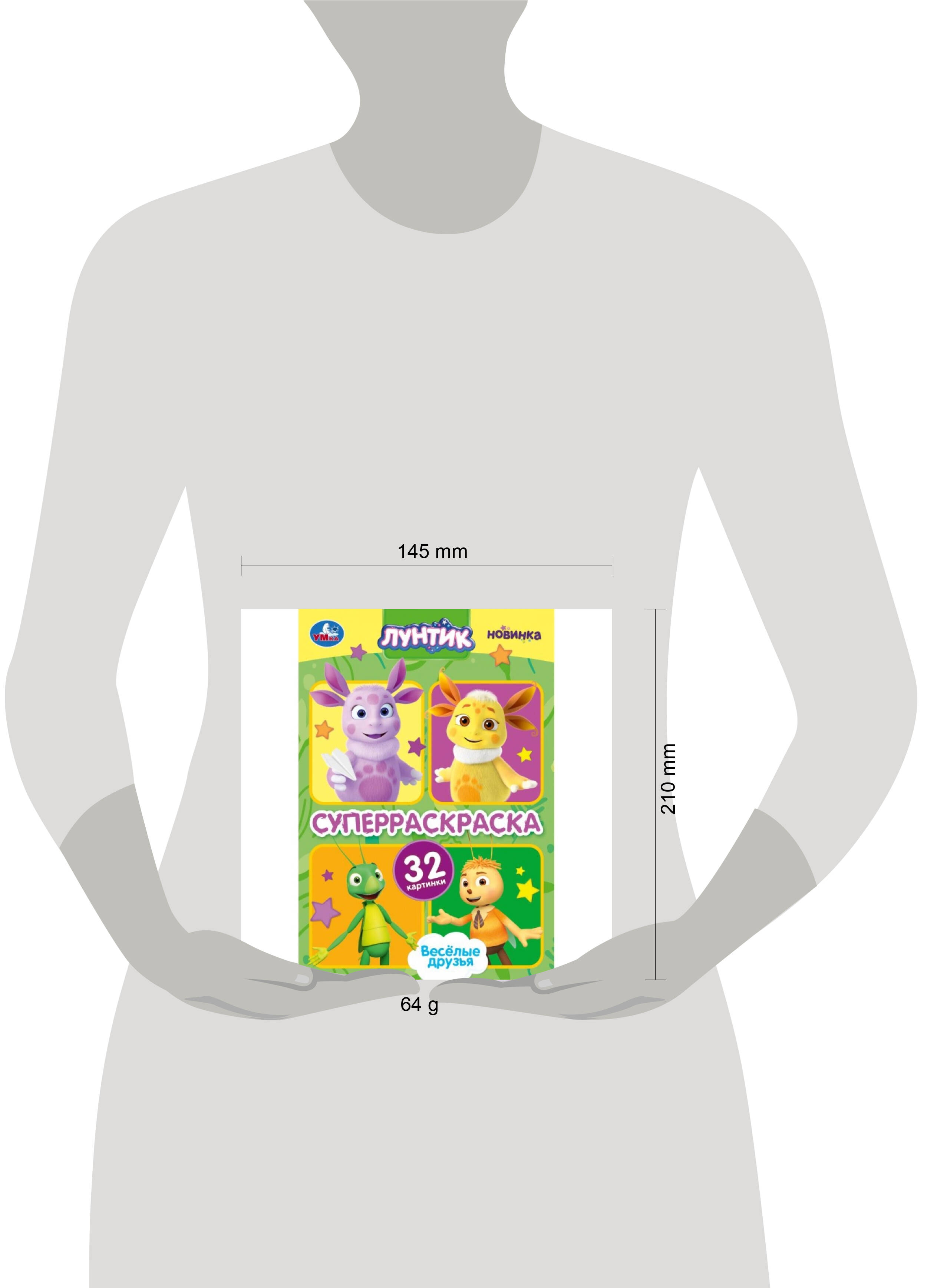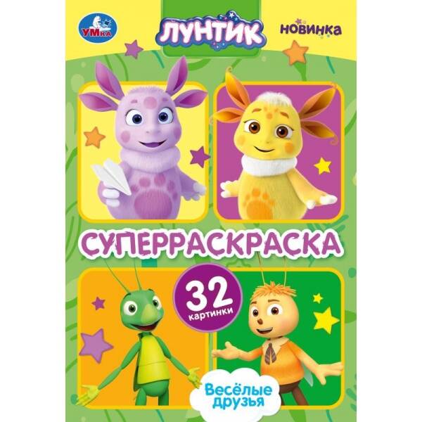 Аннотация: Весёлые друзья. Лунтик. Супер-раскраска 32 картинки. 145х210 мм. Скрепка. 32 стр. Умка в кор.50шт