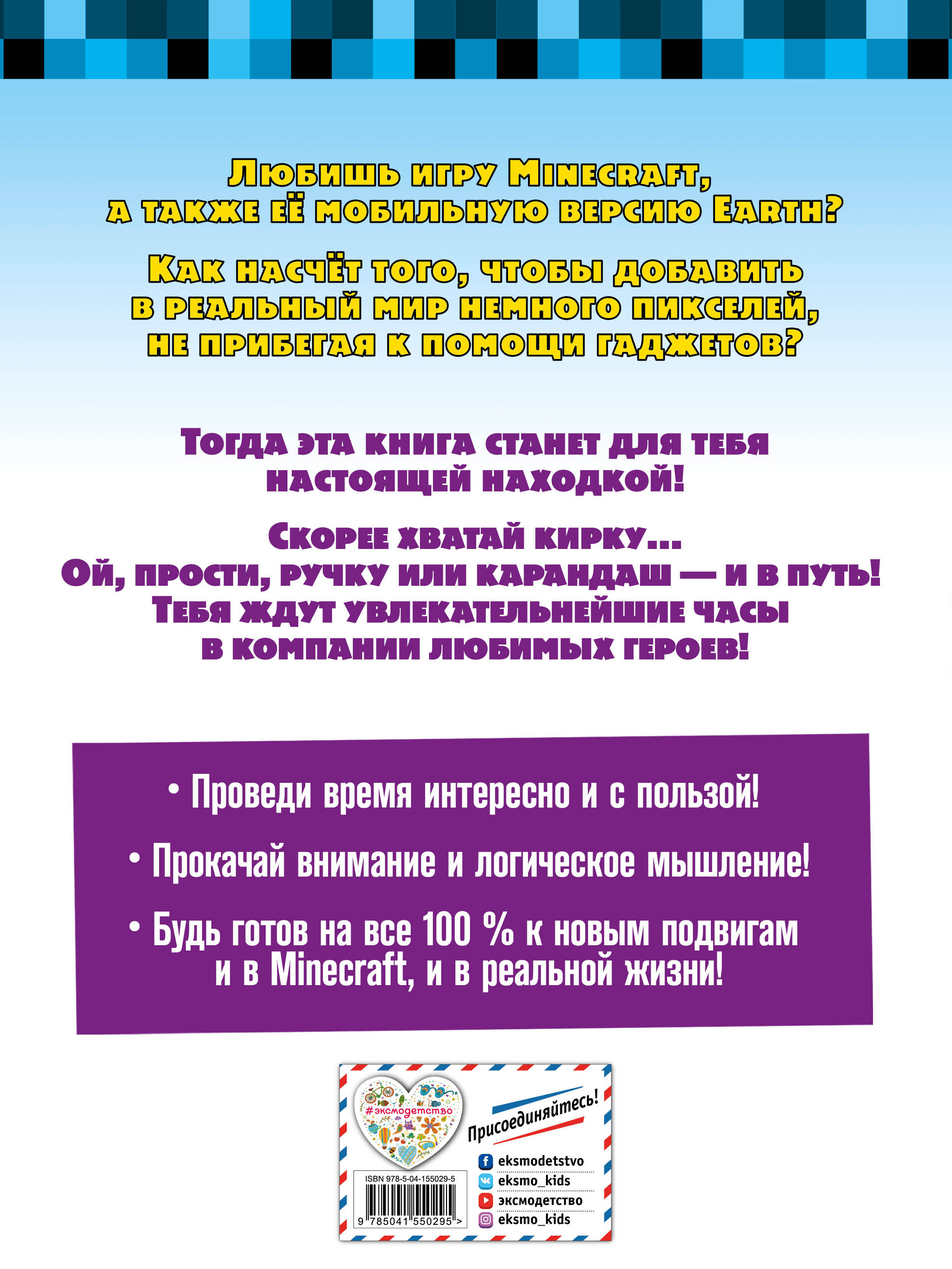 Смотришь на мир вокруг и… хочешь дополнить его персонажами из Minecraft? По достоинству оценил мобильную версию игры Earth? Тогда эта книга - то, что тебе нужно! Пройди совершенно невообразимые головоломки и лабиринты, разгадай невероятнейшие шифры и кроссворды, прокачай внимание и память! И всё это - в компании давно полюбившихся героев!