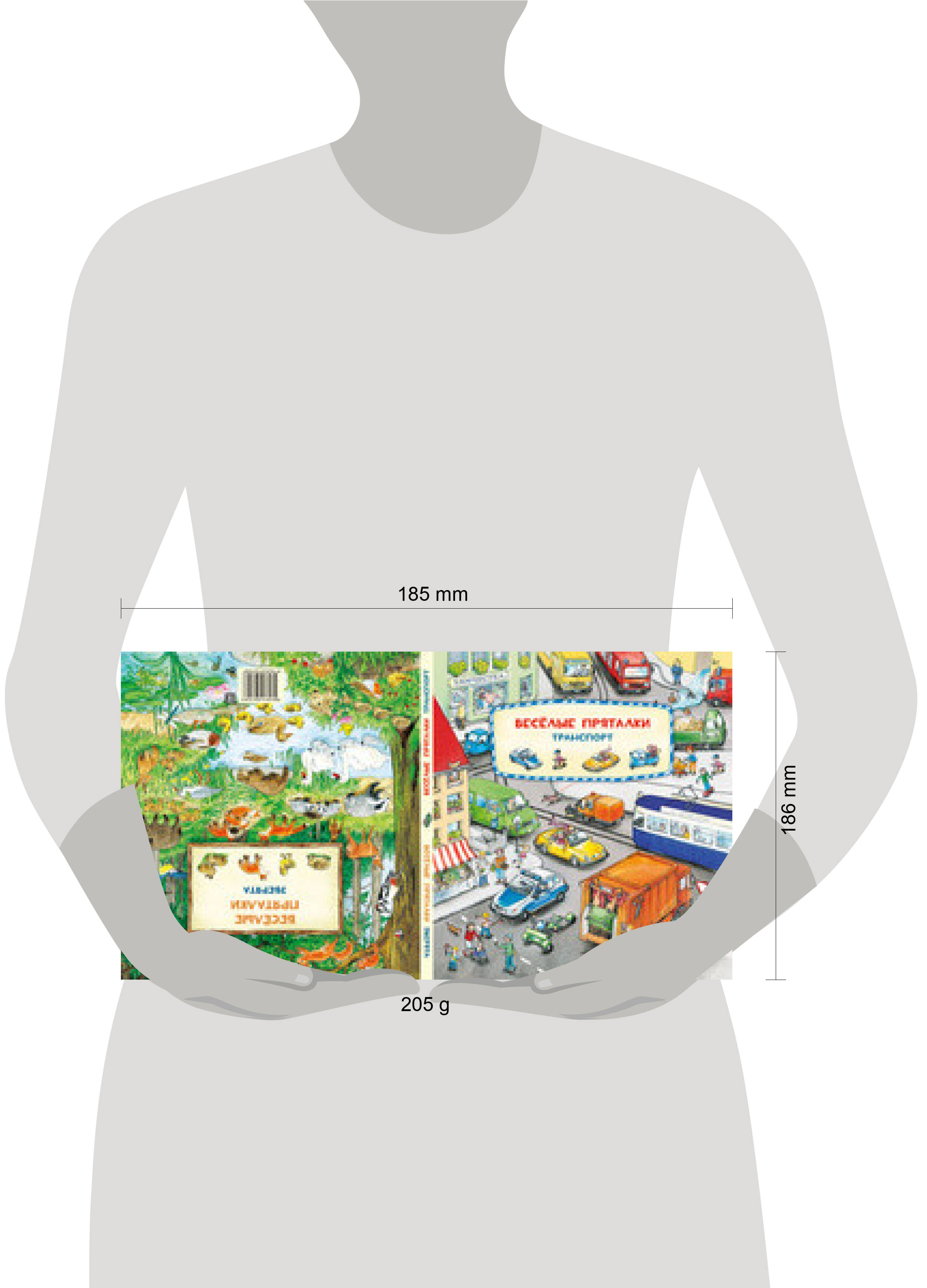 Книга-перевертыш. Весёлые пряталки. Зверята Множество зверят живёт в лесу, на ферме и даже в зоопарке! А каких ты уже знаешь и можешь назвать? Давай поиграем в весёлые пряталки! В лесу белочка грызёт орешки. В поле резвятся пушистые ягнята. На ферме цыплята играют с гусятами. А в зоопарке потерялся маленький львёнок. Попробуй найти их всех! Весёлые пряталки. Транспорт Ты любишь кататься на велосипеде? А летал когда-нибудь на воздушном шаре? И знаешь, для чего нужен трактор? Давай поиграем в весёлые пряталки! Ты увидишь, какие машины работают на стройке, а какие - тушат пожар. На чём перевозят груз и как убирают урожай. А ещё полюбуешься на самолёты и корабли. Теперь найди всё это на картинках!| Издательство | НИГМА Издательский дом |