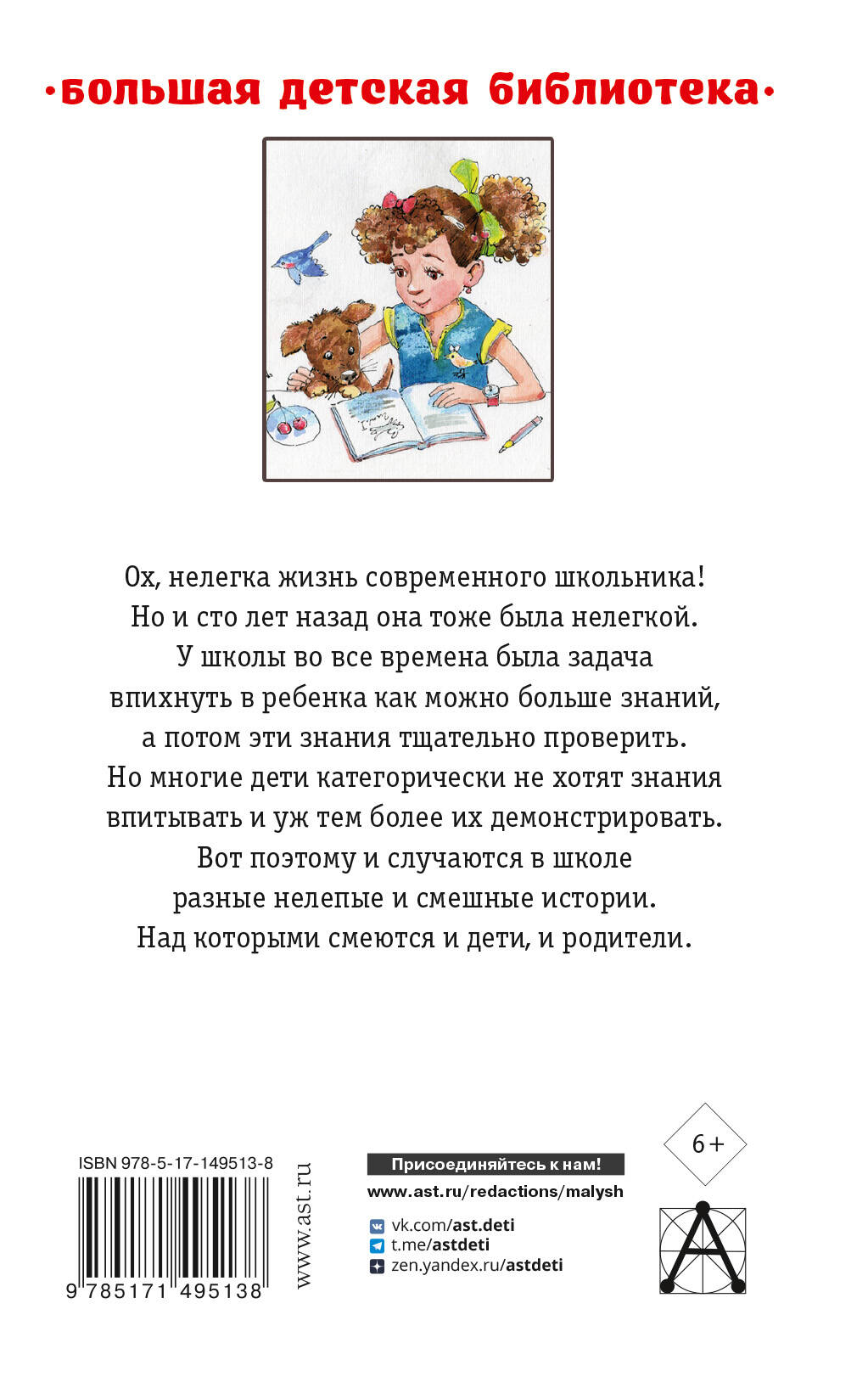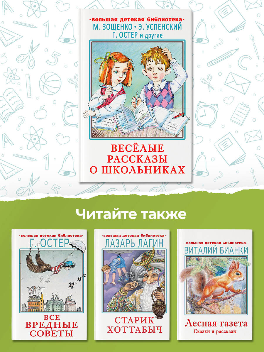 В книгу вошли рассказы про школьников - сегодняшних и вчерашних, XXI, XX и даже XIX веков. Разница между ними, конечно, есть, ведь в XIX веке учителя были строже, а у учеников прав было меньше. Но в общем дети были такими же озорными и склонными к хулиганским выходкам на уроках. И на переменах. И премудрые их головы посещали примерно одинаковые мысли: как уничтожить единицу в дневнике, как списать контрольную работу и как, не прилагая усилий, оказаться в числе лучших учеников. В составе произведения писателей М. Зощенко, А. Аверченко, В. Драгунского, Г. Остера, Э. Успенского, Кира Булычева, Л. Каминского и др. Для младшего школьного возраста.| Издательство | АСТ |