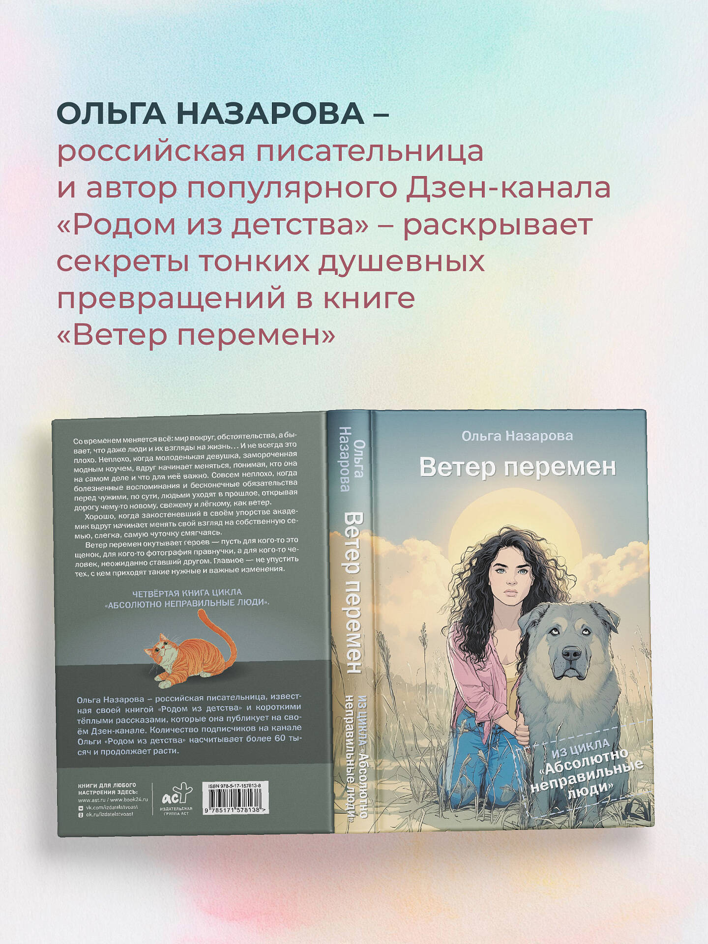 Как меняются люди под влиянием перемен и какой у этого исход? Ольга Назарова, российская писательница и автор популярного Дзен-канала «Родом из детства», делится секретами тонких душевных превращений между людьми в книге «Ветер перемен». Четвертый роман в цикле «Абсолютно неправильные люди» отличается практичностью обложки, покрытой лаком, и компактностью формата, что позволяет всегда носить его с собой в сумке. Любимая книга всегда под рукой! Изменения ведут к лучшему - люди сбрасывают груз прошлого, освобождая место чему-то новому и светлому. Главное - разглядеть тех, кто их приносит в нашу жизнь!| Издательство | Издательство "АСТ" |