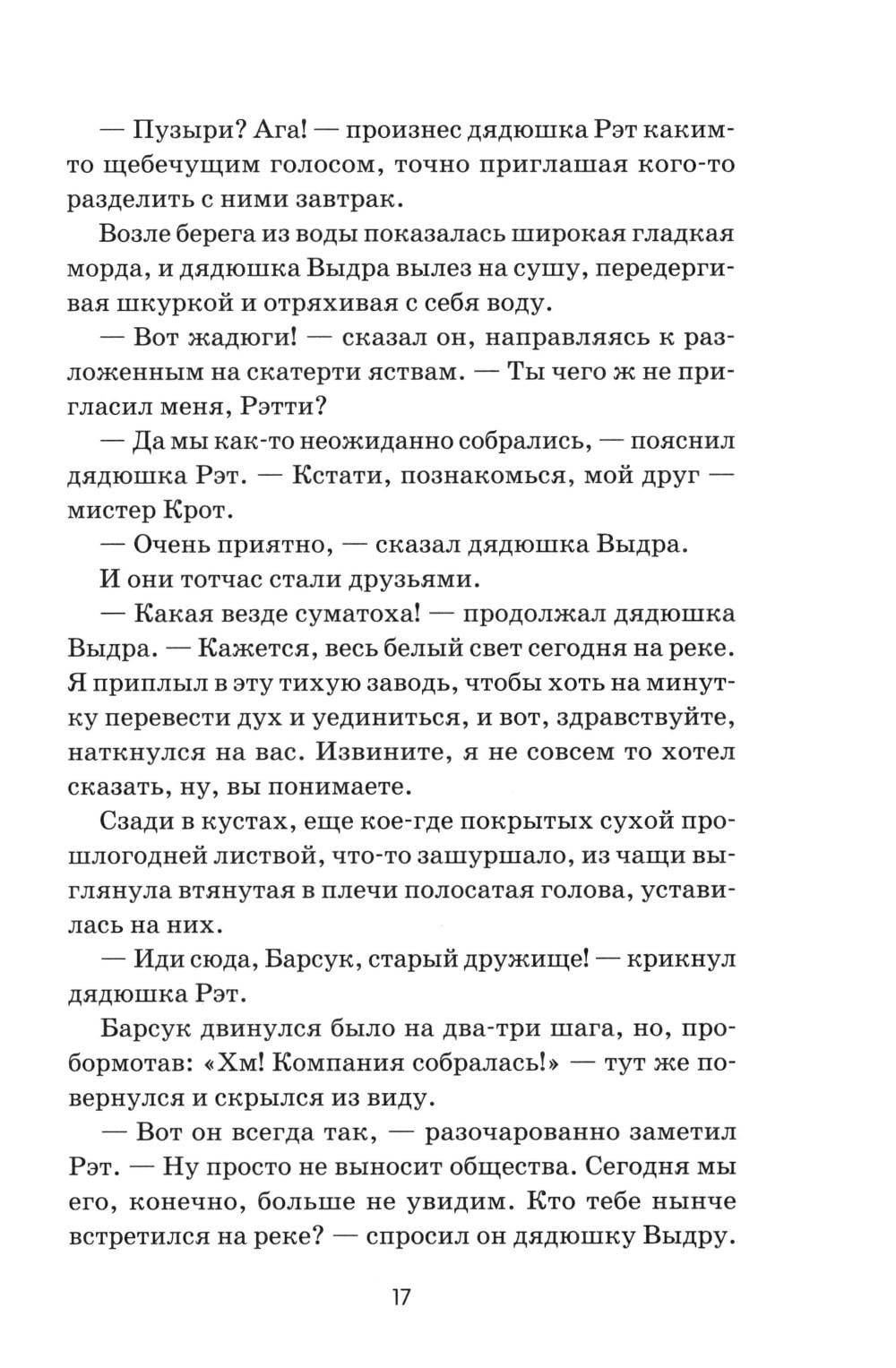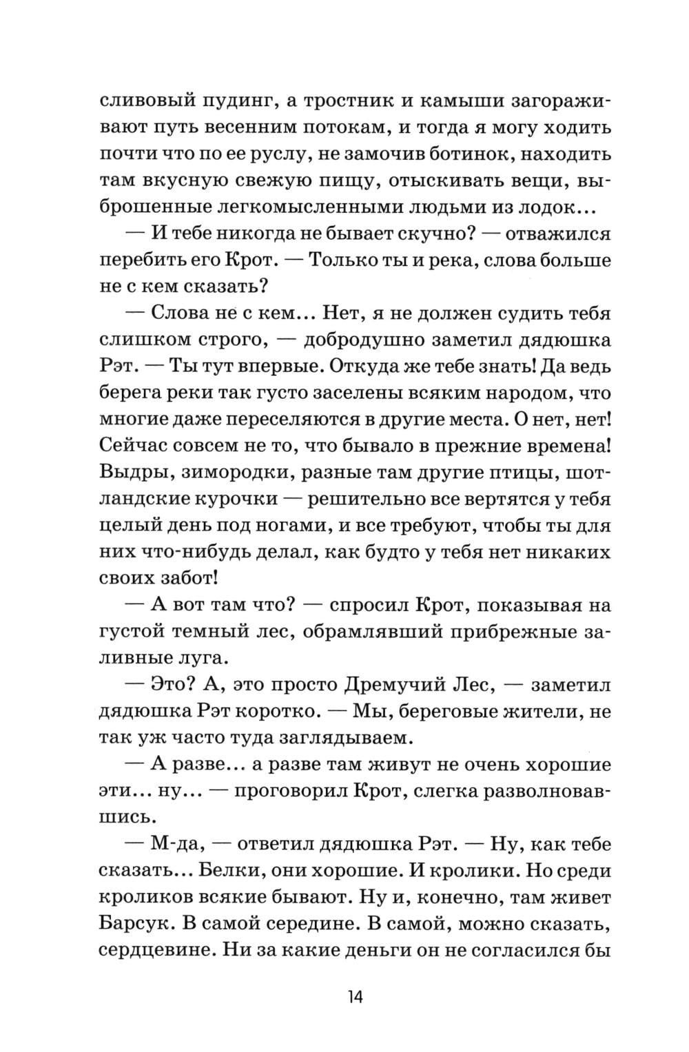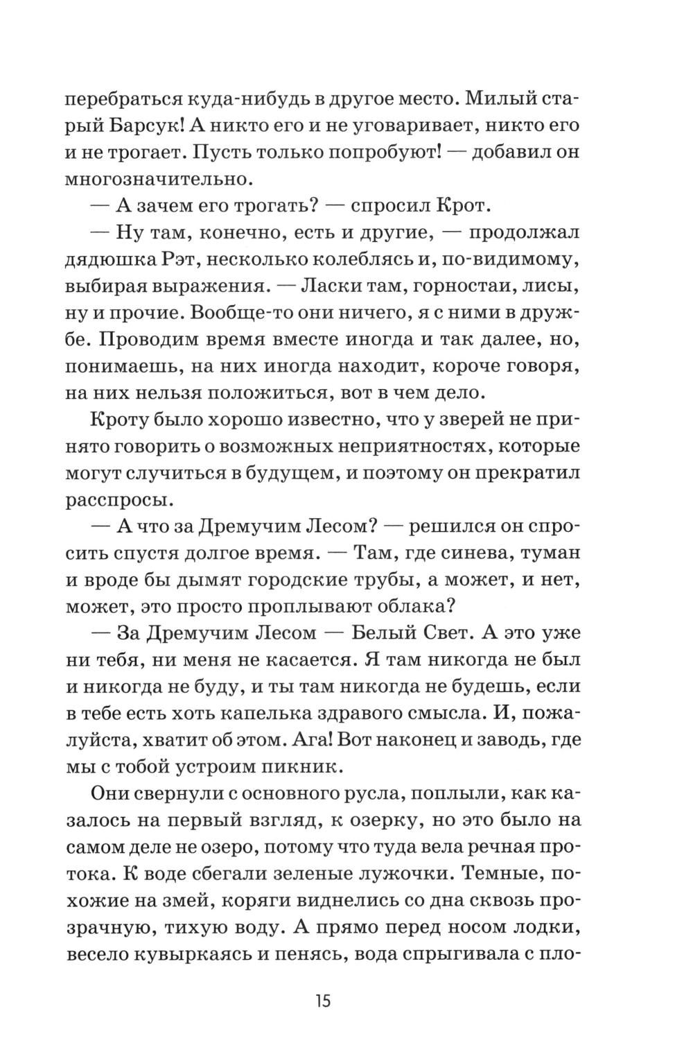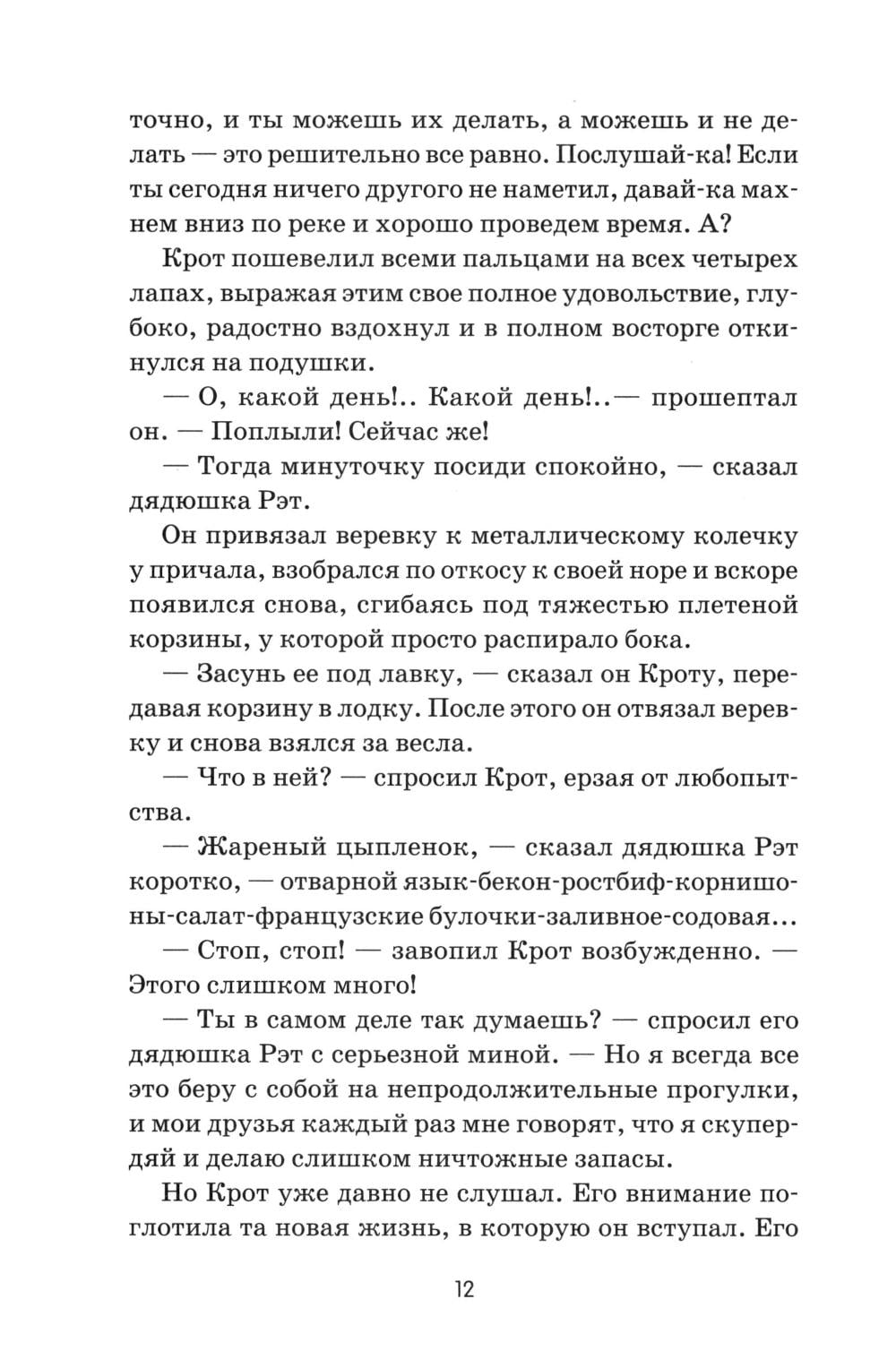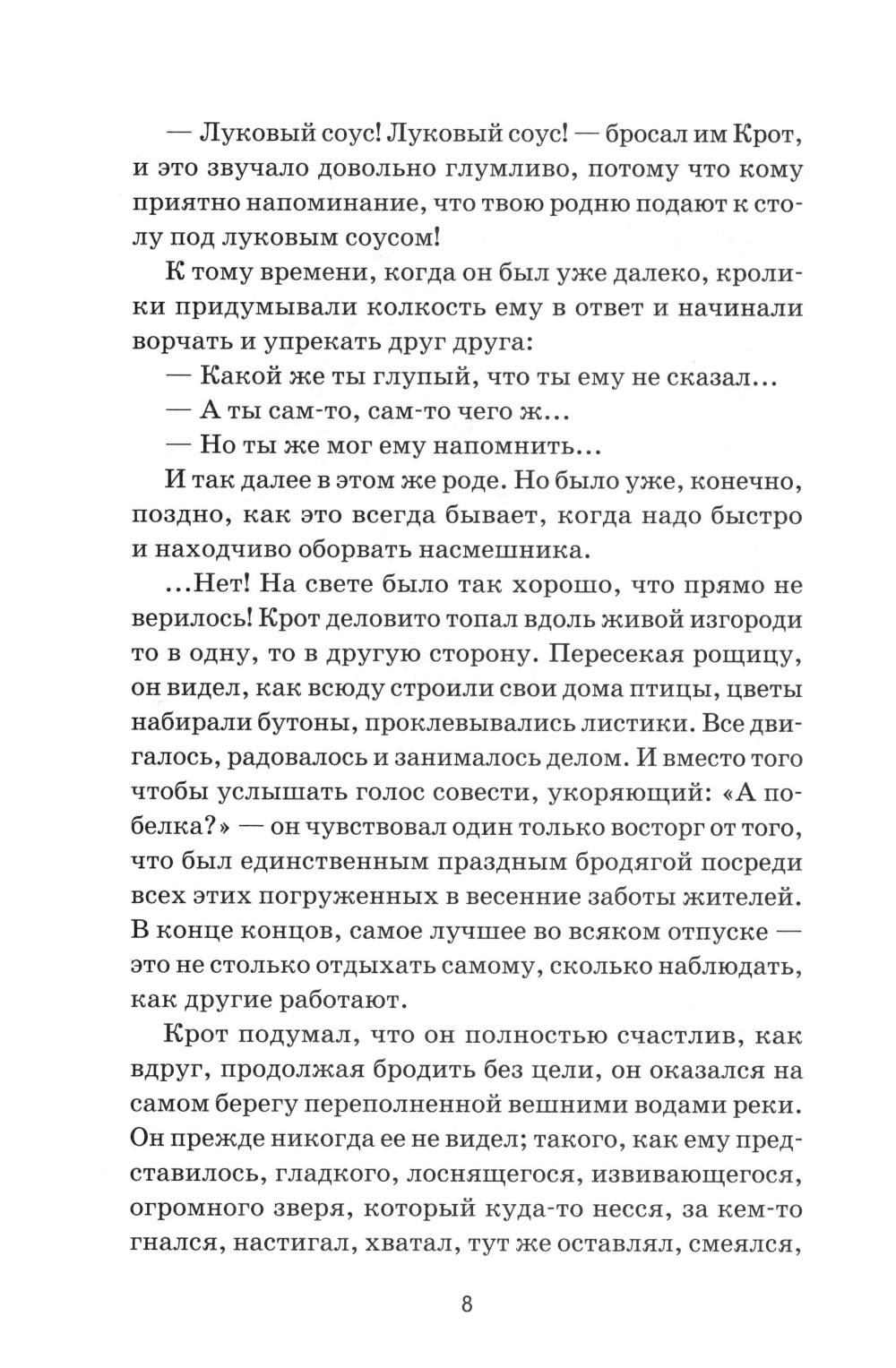Герои смешной, а иногда грустной сказки, так полюбившейся и маленьким, и взрослым читателям, - звери, наделенные трогательными и подчас смешными человеческими качествами. Множество захватывающих приключений ожидают любознательного Крота, деликатного Рэта, мудрого Барсука и легкомысленного Тоуда в истории, сочиненной когда-то Кеннетом Грэмом для своего маленького сына. Сказка «Ветер в ивах» принесла Грэму шумный успех, была переведена на десятки языков, постоянно переиздается во многих странах мира и давно стала классикой детской литературы. А знаменитый мультипликатор Уолт Дисней снял по этой книге популярный мультфильм.| Издательство | Феникс |