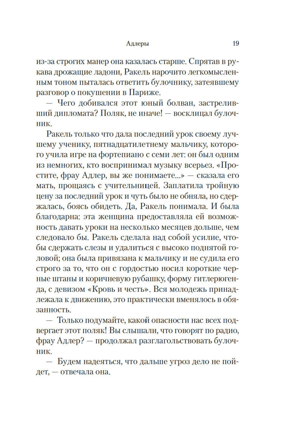 Вена, 1938 год. Вскоре после Ночи разбитых витрин шестилетний скрипач Самуил Адлер уезжает из страны - его мать, потеряв мужа и боясь за ребенка, отправляет сына с другими еврейскими детьми в очень относительную безопасность Англии. Своих родных он больше не увидит. Все, что остается хрупкому и отчаявшемуся Самуилу, - музыка, в которой мальчик прячется от одиночества и неутолимого горя. А также семья квакеров, которые берут его под крыло. Аризона, 2019 год. Семилетняя Анита Диас и ее мать бегут из Сальвадора, и после перехода границы Соединенных Штатов их разлучают. Увидятся ли они снова - большой вопрос. Все, что остается незрячей и растерянной Аните, - воображаемая страна Асабаар, в которой девочка прячется от одиночества и жестокого, непонятного мира. А также поддержка одного честолюбивого адвоката и одной пылкой соцработницы, которые берутся найти пропавшую мать Аниты. Эти события и этих детей разделяют восемь десятилетий. Два человека ищут семью и дом. Оба почти лишились надежды. Однако жизнь сведет Самуила и Аниту и подарит им второй шанс, потому что рядом окажутся люди, которым не все равно. Исабель Альенде - суперзвезда латиноамериканской литературы наряду с Габриэлем Гарсиа Маркесом, одна из самых знаменитых женщин Южной Америки, обладательница многочисленных премий; ее книги переведены на десятки языков, и их суммарные тиражи неуклонно приближаются к ста миллионам экземпляров. Ее новейший роман «Ветер знает мое имя» - история, вдохновленная подлинными событиями: слепая девочка из Сальвадора, которую после въезда в США разлучили с матерью, стала подопечной Фонда Исабель Альенде, помогающего женщинам и детям. Эта история реальна и притом универсальна: веками бездумная жестокость разлучает семьи, ранит детей, убивает взрослых, лишает людей последней надежды, и веками находятся люди, которые готовы помочь, не отворачиваются и не боятся.| Издательство | Азбука |