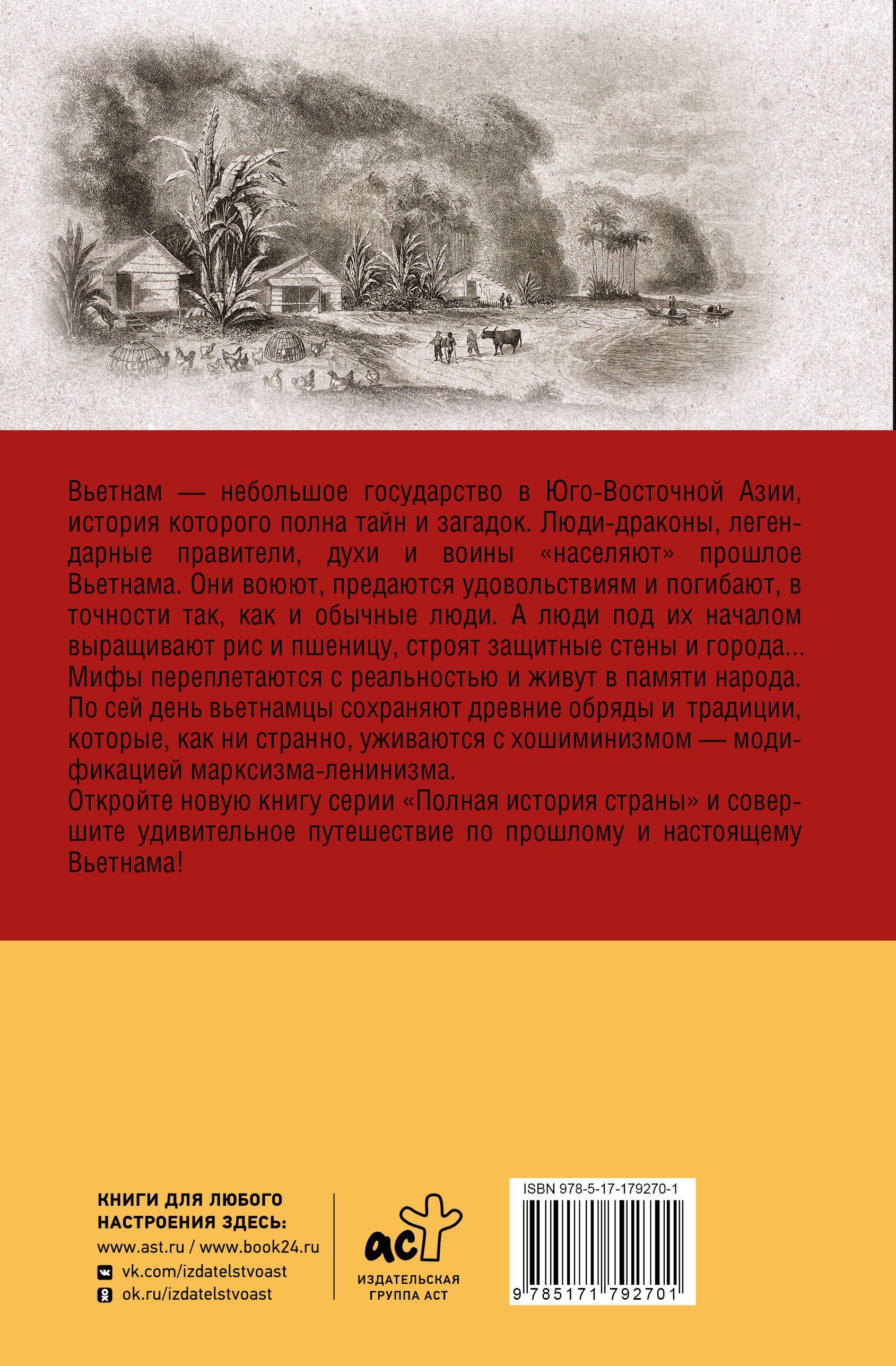 Вьетнам - небольшое государство в Юго-Восточной Азии, история которого полна тайн и загадок. Люди-драконы, легендарные правители, духи и воины "населяют" прошлое Вьетнама. Они воюют, предаются удовольствиям и погибают, в точности так, как и обычные люди. А люди, под их началом, выращивают рис и пшеницу, строят защитные стены и города... Мифы переплетаются с реальностью и живут в памяти народа. По сей день вьетнамцы сохраняют древние обряды и традиции, которые, как ни странно, уживаются с хошиминизмом - модификацией марксизма-ленинизма. Откройте новую книгу серии "Полная история страны" и совершите удивительное путешествие по прошлому и настоящему Вьетнама!| Издательство | Издательство "АСТ" |