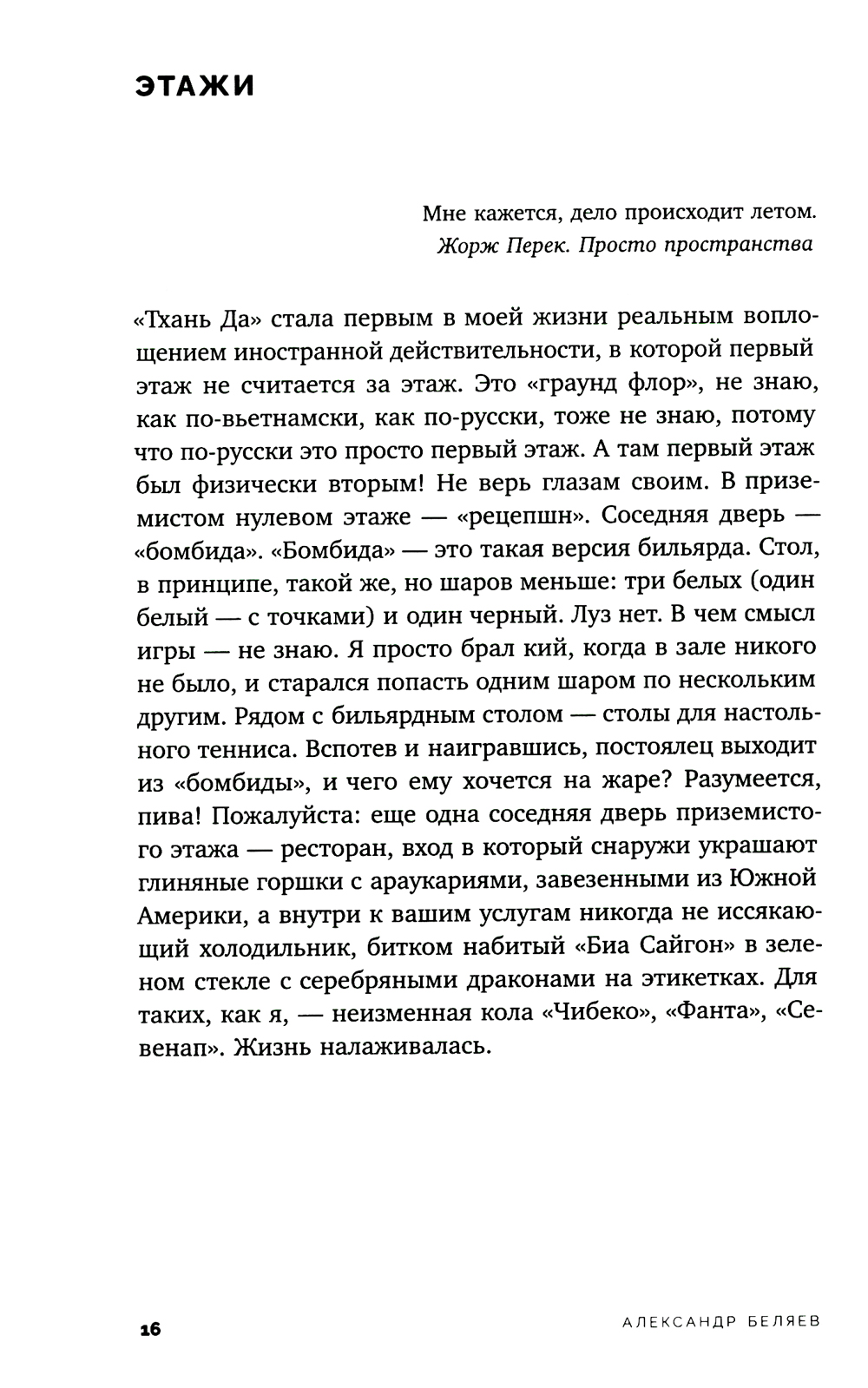 Самолет «Ил-86» рейсом Москва - Хошимин летом 1994 года летел десять часов и совершал промежуточную посадку в Дели. Так начинается рассказ Александра Беляева о детских и юношеских годах, проведенных во Вьетнаме - стране, уже пережившей войну и колониальный опыт. Центральный рынок «Бен Тхань», известный среди советских как «Сайгон-базар», рынок в «Тхань Де», где можно купить настойки на змеях, гекконах и морских коньках в огромных стеклянных бутылях, уличные забегаловки, где подают «супчик фо», «супчик лао» и «сайгонские блинчики», вечерние дискотеки, на которые съезжалась молодежь на роскошных мотоциклах типа «Хонда-стид» и «Ямаха-вираго», где танцевали под Ace of Base и Dr. Alban... Автор дает памяти отфильтровать все лишнее и оставить самые выразительные детали, выхваченные взглядом растерянного ребенка. И в то же время этот взгляд, переданный уже сформировавшимся автором, не менее пристально сфокусирован на окружающих рассказчика взрослых - советских людях, вдруг оказавшихся в постсоветском мире. Александр Беляев - поэт, переводчик, японовед, теоретик и практик ориентального письма, автор книг «Листья гинкго» и «BUNGEIRON. Взгляд на японское письмо».| Издательство | Новое литературное обозрение |
