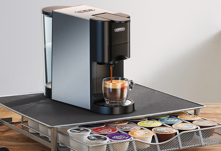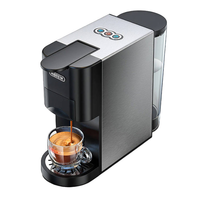 Хотите насладиться ароматным кофе дома? Выбирайте капсульную кофеварку HiBREW H3A 4-в-1, чтобы быстро и удобно приготовить свой любимый напиток. Кофемашина совместима с капсулами Nespresso и Dolce Gusto, а также позволяет заваривать молотый кофе и использовать пакетики ESE. Устройство использует давление в 19 бар, что обеспечивает насыщенный вкус кофе, а мощность в 1450 Вт обеспечивает эффективную работу. Емкость резервуара для воды составляет 1 л, плюс кофемашина позволяет регулировать объем вашего кофе.