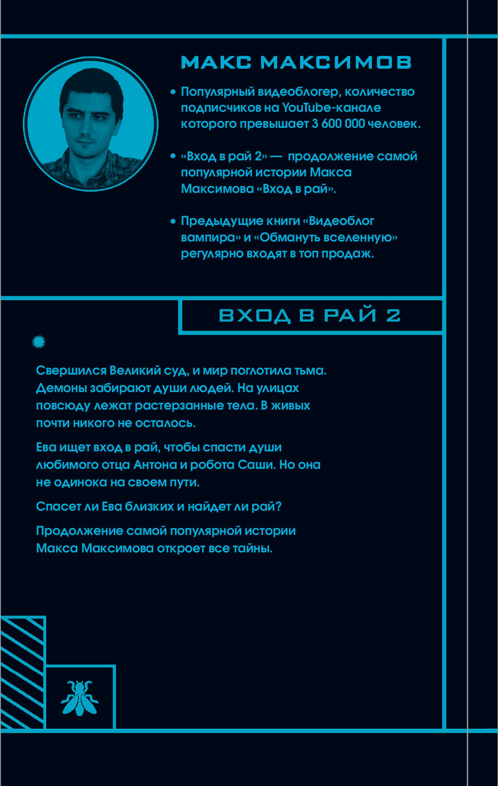 Свершился Великий суд, и мир поглотила тьма. Демоны забирают души людей. На улицах повсюду лежат растерзанные тела. В живых почти никого не осталось. Ева ищет вход в рай, чтобы спасти души любимого отца Антона и робота Саши. Но она не одинока на своем пути. Спасет ли Ева близких и найдет ли рай? Продолжение самой популярной истории Макса Максимова откроет все тайны. «Вход в рай-2» - продолжение САМОЙ популярной истории из книги «Апокалипсис³». Max Maximov - популярный YouTube-блогер, на канале которого уже более 3 600 000 подписчиков. Предыдущие книги автора «Светлый человек», «Видеоблог вампира» и «Обмануть вселенную» - постоянные лидеры продаж. Дойдет ли Ева до рая? Сможет ли она спасти отца? Что стало с Сашей и Левием? Все ответы - здесь.